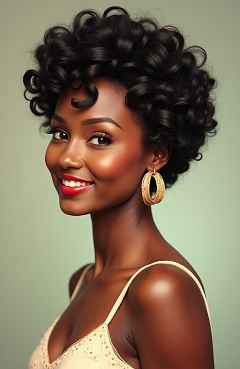 Dorothy Dandridge’s short curls are playful and full of life. They’re perfect for adding a bit of fun to your everyday look. These curls work well for any occasion.
