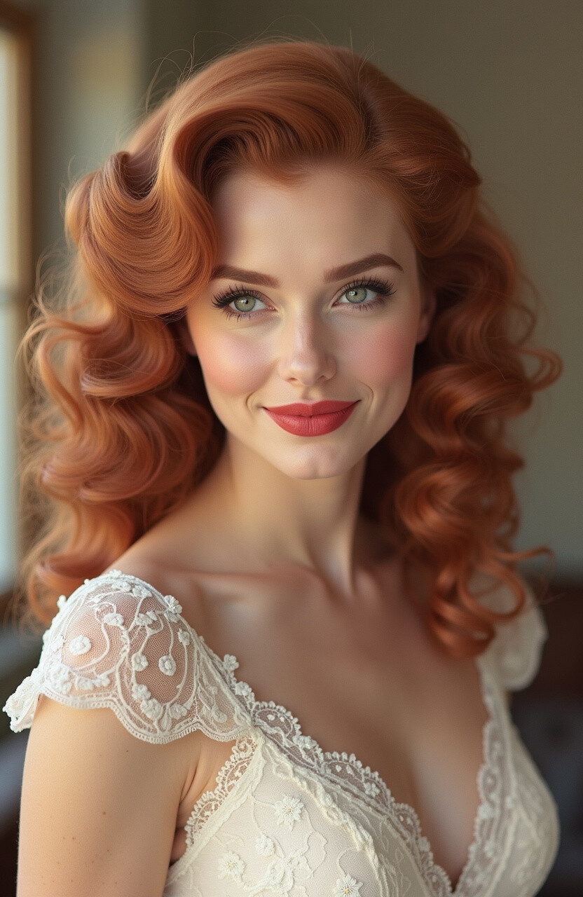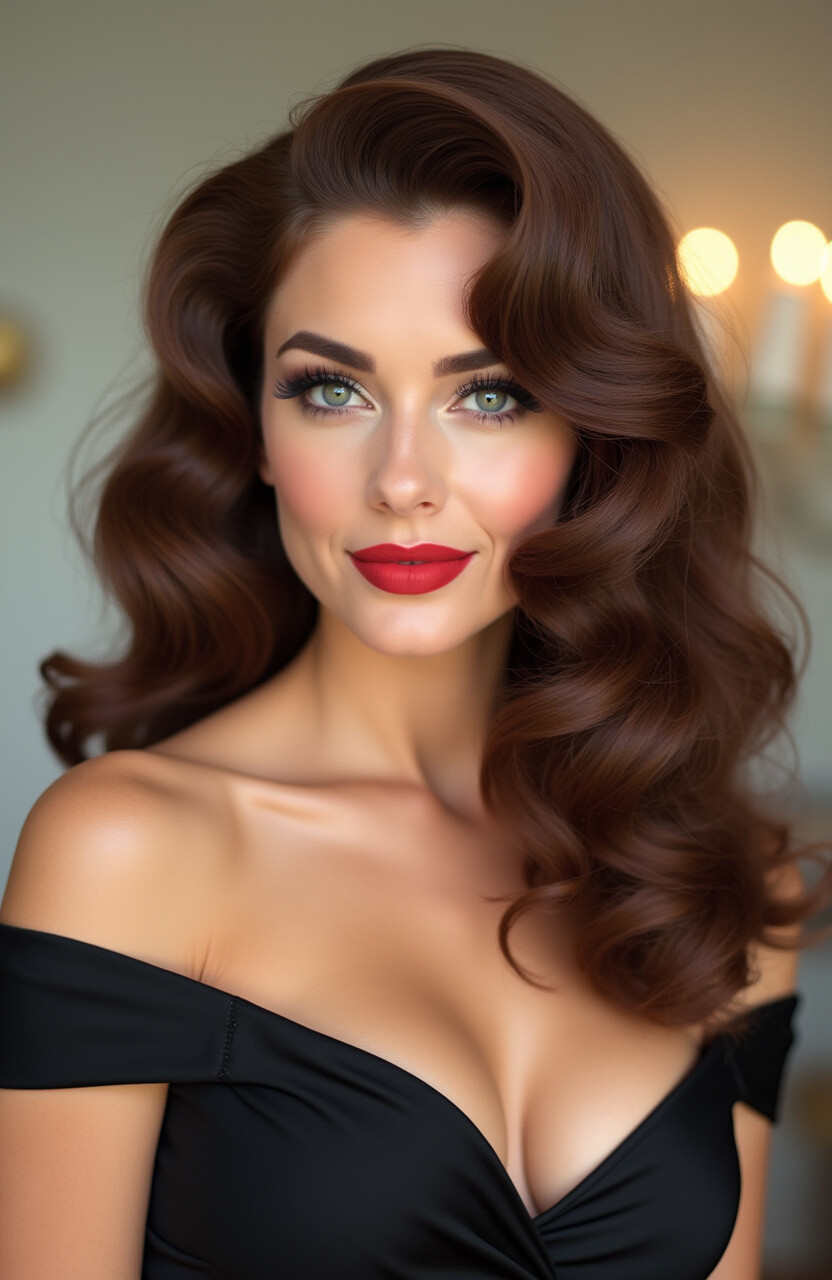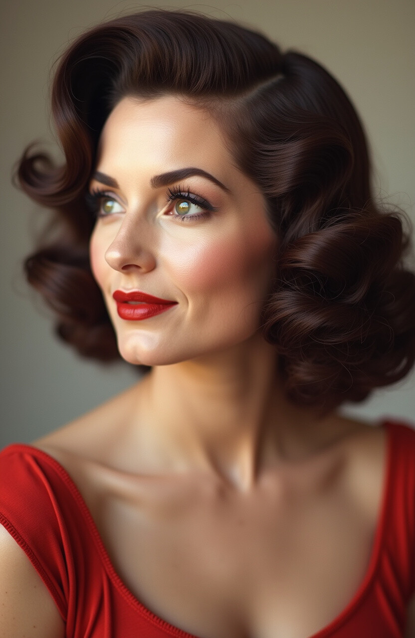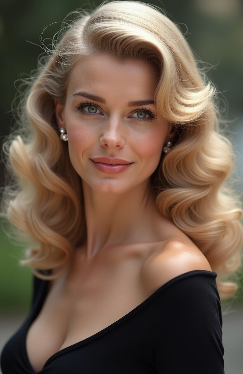 Use setting rollers or a medium curling iron to achieve tight curls. Once set, fluff them out with your fingers for that signature Marilyn look. Add a bold red lip, and you’re ready to steal the spotlight. It’s a classic look that never goes out of style.