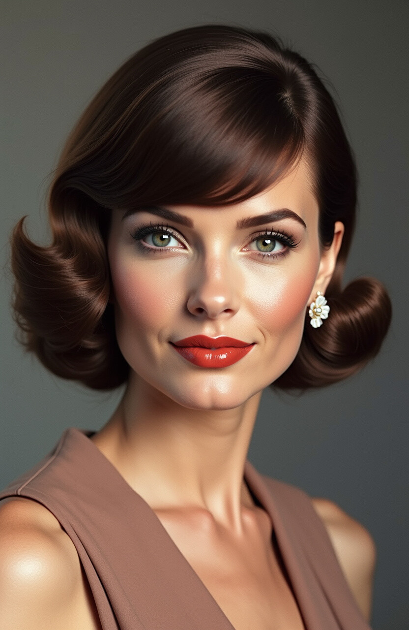 Lana Turner’s rolled bangs are playful and unique. They’re perfect for adding a touch of whimsy to your look. This hairstyle is ideal for both day and night events.