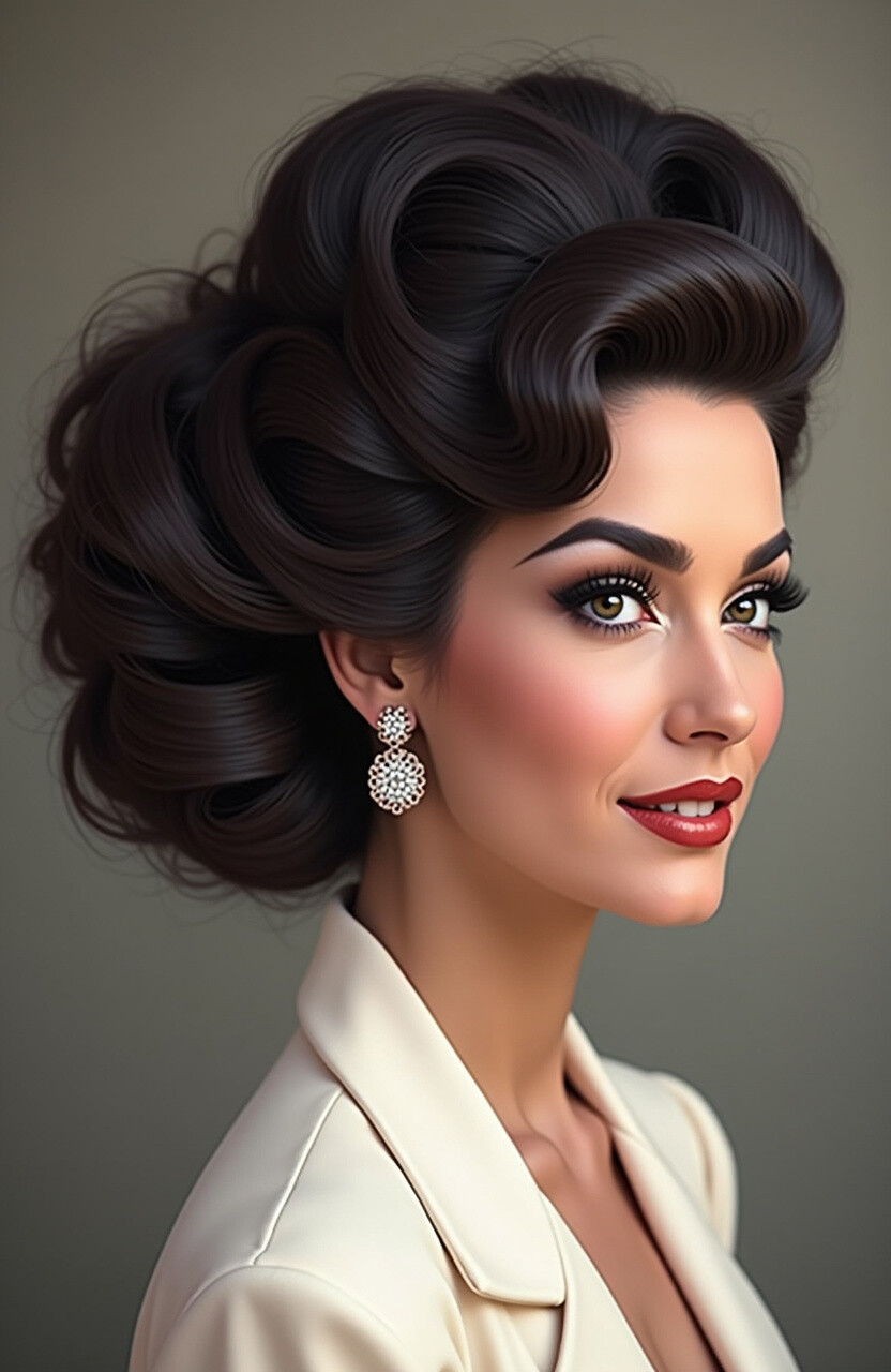Elizabeth Taylor’s updos were all about volume and drama. This hairstyle is perfect for a formal event where you want to make a grand entrance. It adds height and elegance to any look.