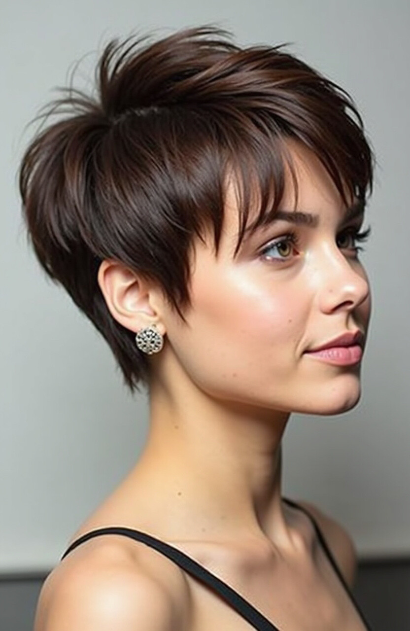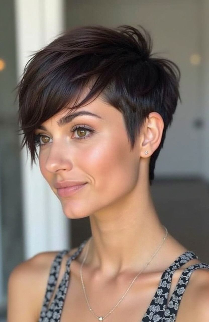 The classic pixie cut is timeless and suits almost everyone. It’s short on the sides and a little longer on top, giving you that effortlessly chic look.