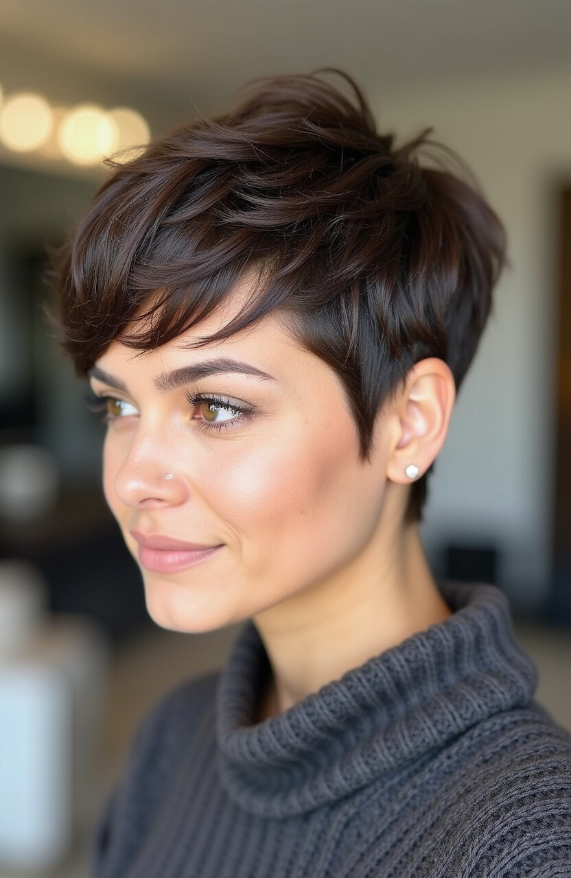 Bangs can change the whole vibe of a pixie cut. They add softness and can frame your face in a flattering way.