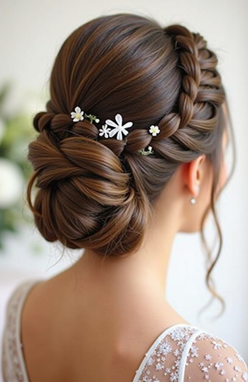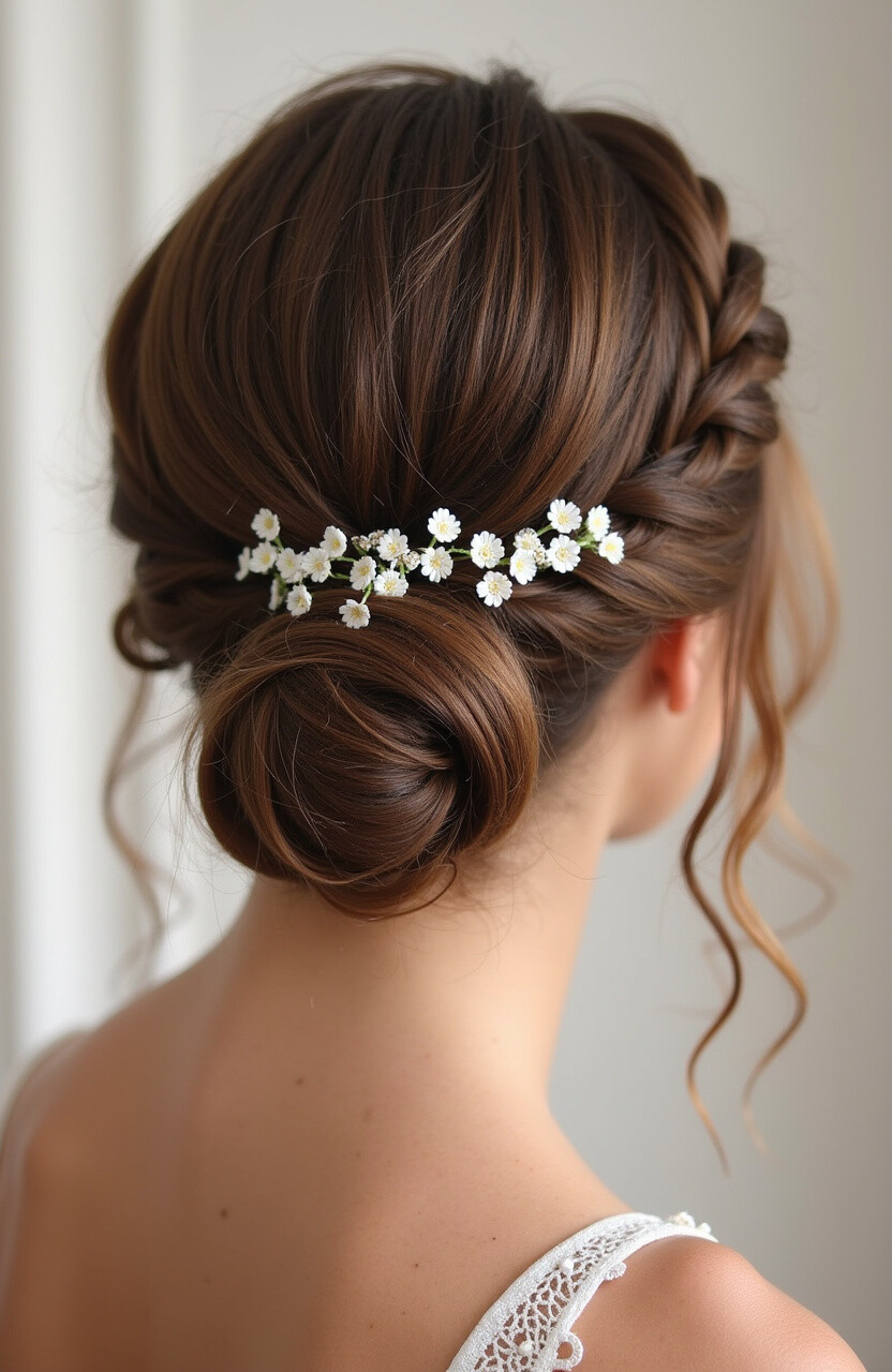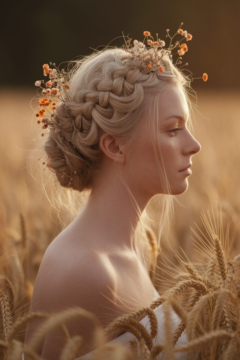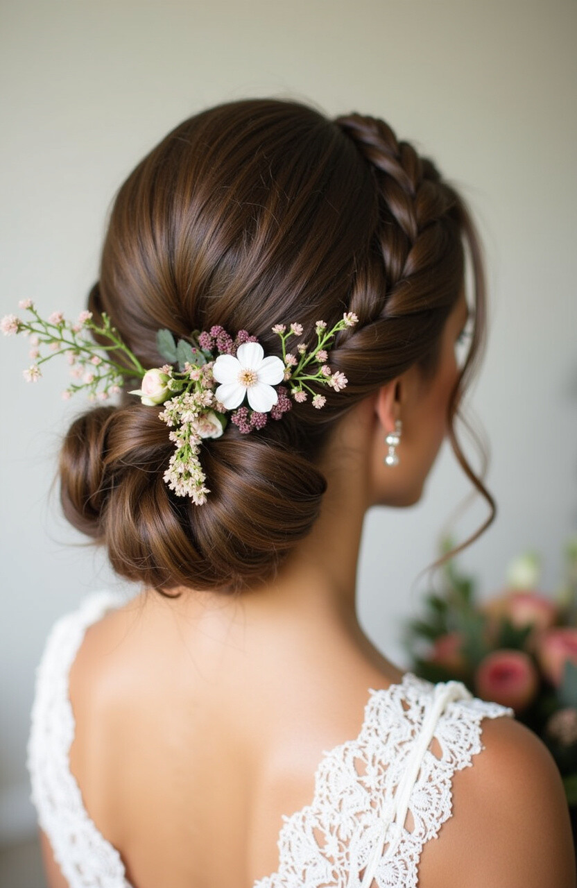 The floral braided updo is a stunning choice for nature lovers. This style incorporates braids with flowers woven through.