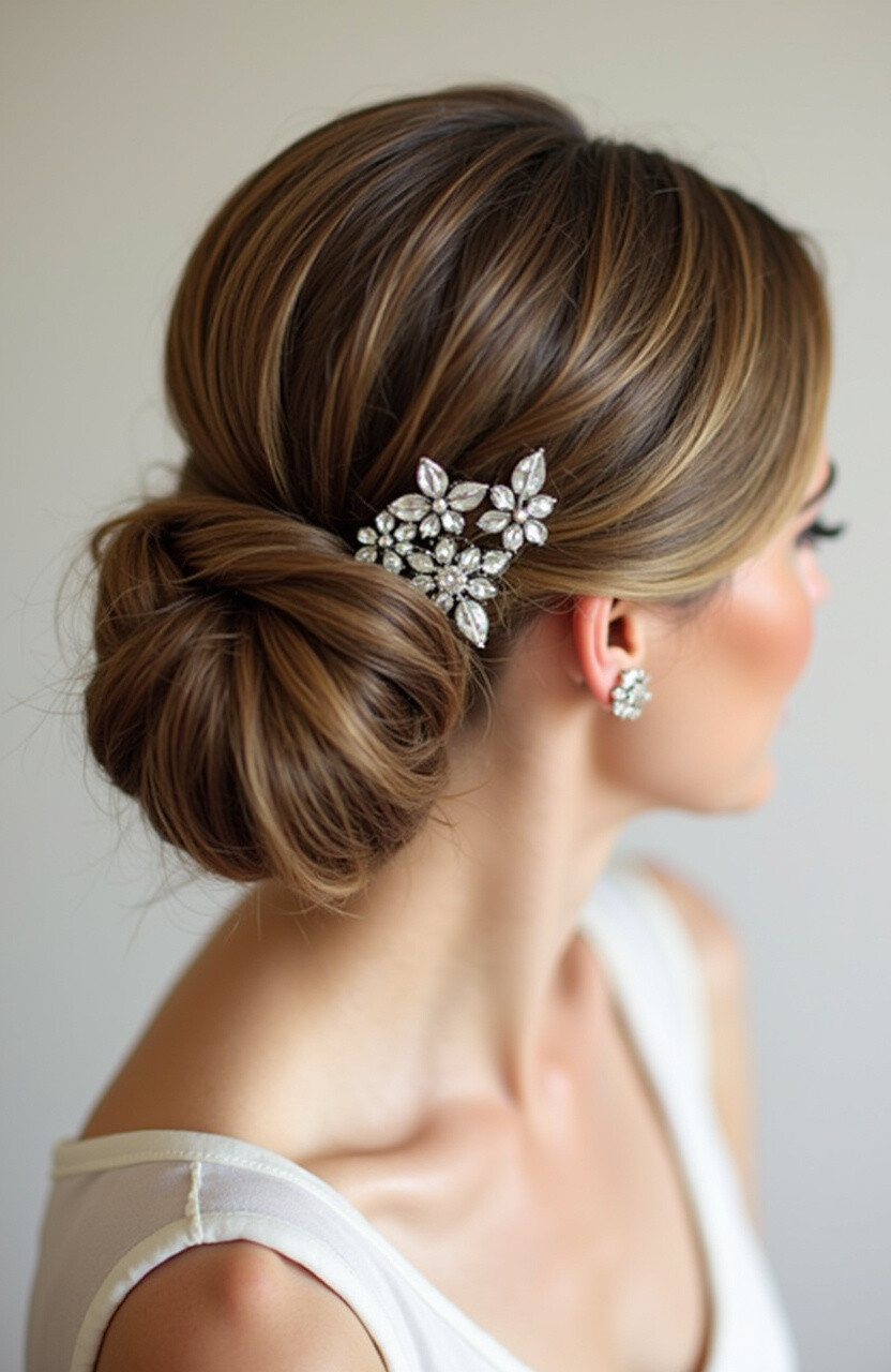 A classic chignon is elegant and timeless, perfect for those who love sophistication. This hairstyle sweeps the hair into a neat coil at the nape of your neck.