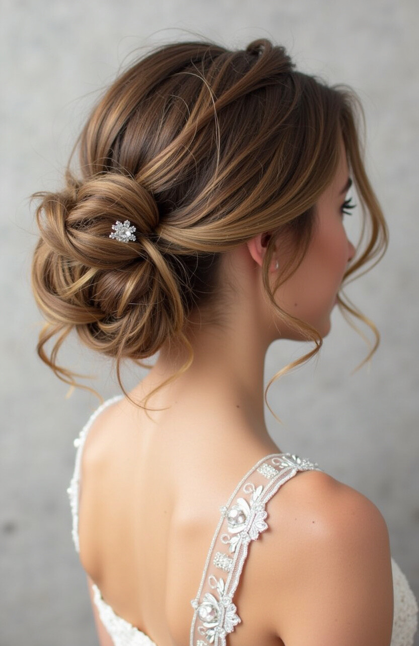 It’s a style that’s always in fashion and works well with both traditional and modern gowns. Personalize it with a jeweled hairpin or fresh flowers for a unique touch.