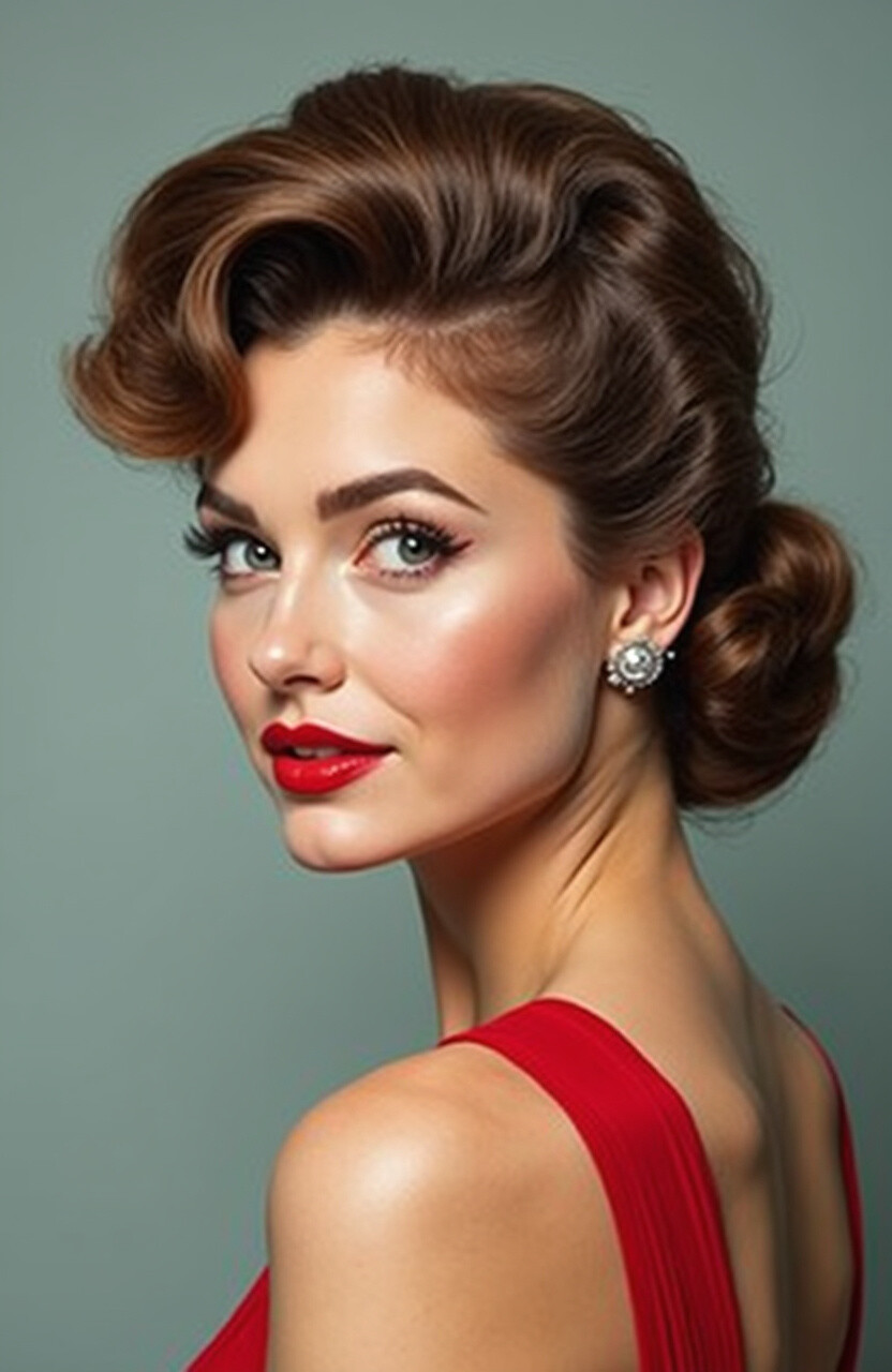 Roll sections of hair and pin them into place, then let the waves cascade down. This look pairs perfectly with a red lip and a confident smile.