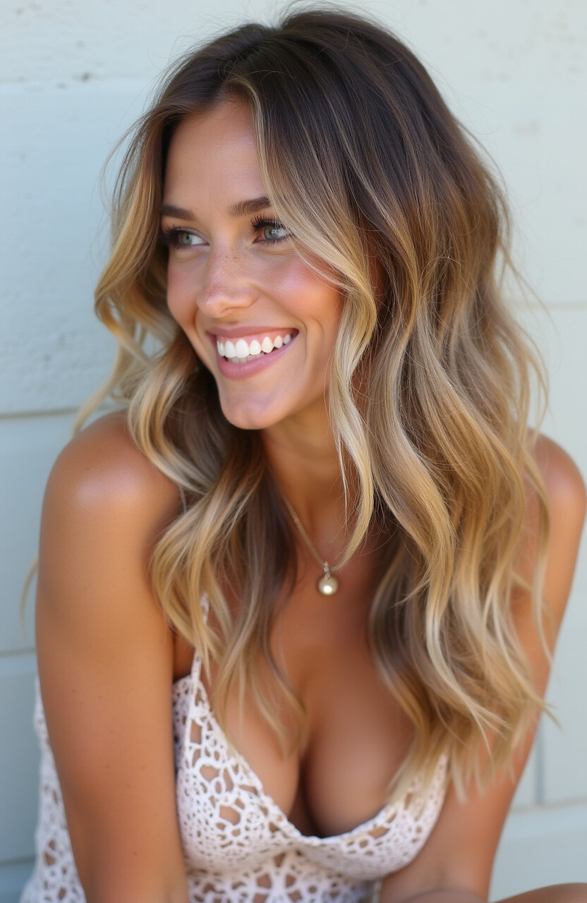 Use sea salt spray on damp hair and scrunch for texture. It’s a low-maintenance style that looks fantastic with natural highlights.
