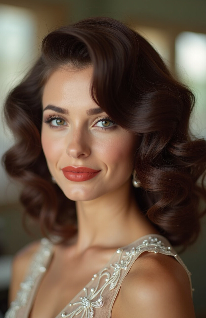 Step back in time with glamorous waves that scream vintage luxury. This style is perfect for formal occasions and adds a touch of old-school Hollywood to your look.