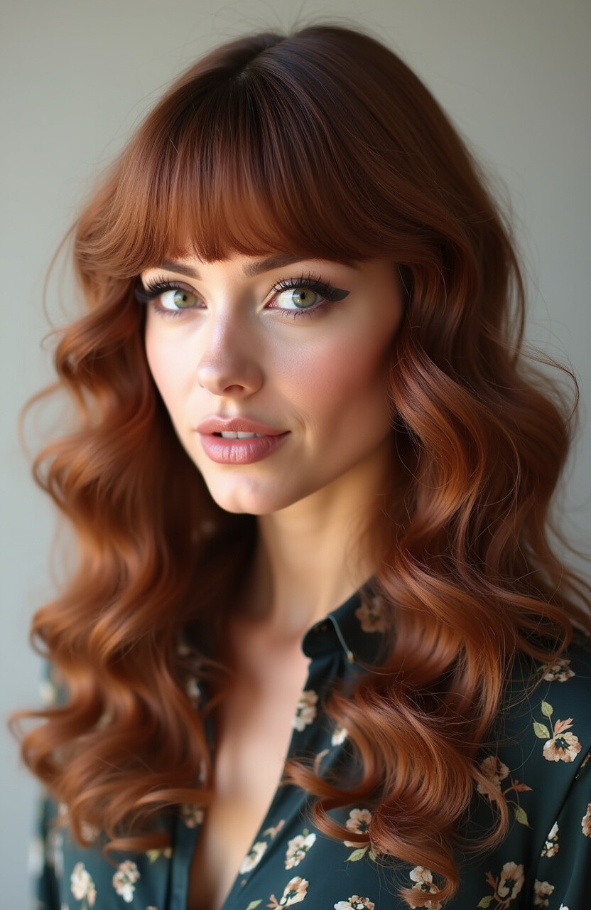 Style your bangs with a small curling iron and let the waves flow naturally. It’s a sophisticated yet playful look that’s sure to impress.