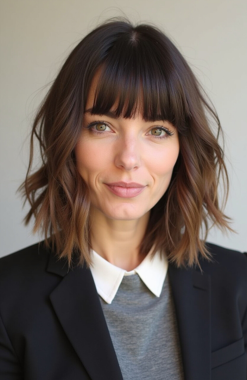 Bangs can be personalized to suit your face shape, whether blunt, side-swept, or wispy. Use a flat iron to keep them sleek or leave them natural for a softer effect. Expect to pay around $60 to $110 for this stylish cut.