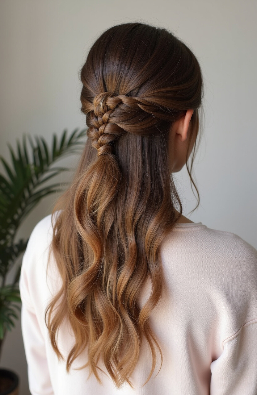 The half-up, half-down style is a versatile option that’s perfect for any occasion. It’s a great way to keep hair out of your face while still showing off your length. This look is both playful and elegant.