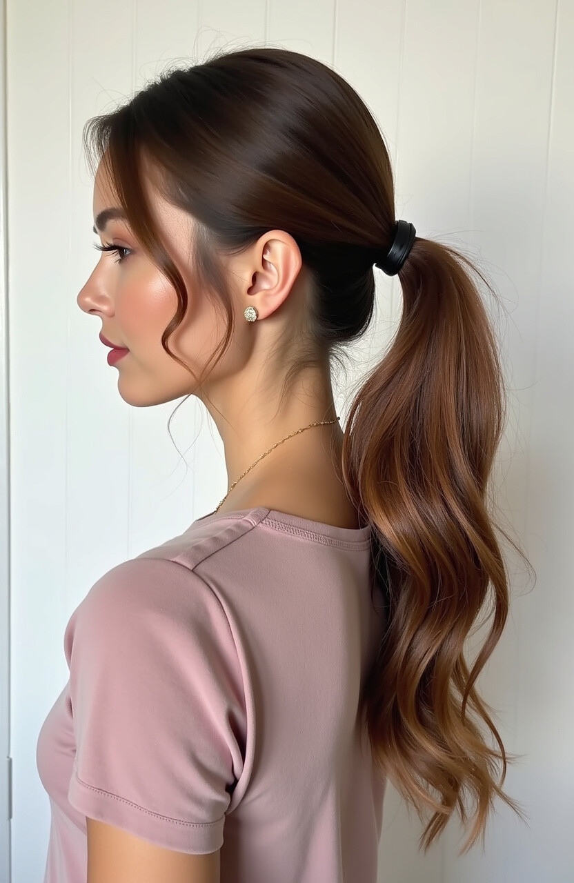 To make it unique, consider wrapping a small section of your hair around the base to hide the hair tie. Use a bit of hairspray for a sleek finish. It’s perfect for those mornings when you’re running late but still want to look put together.