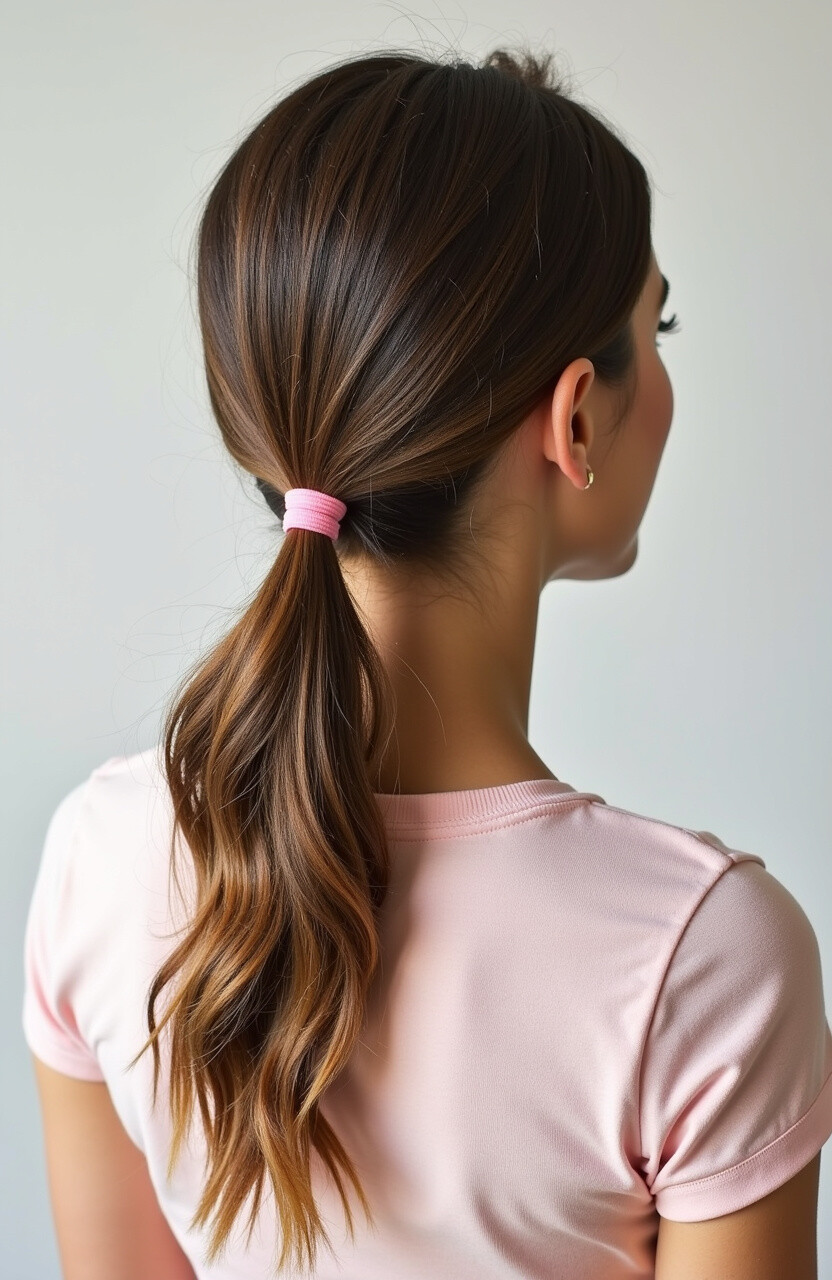 Wrap a ribbon around the base of your ponytail. It’s a simple way to add color and style without much effort.