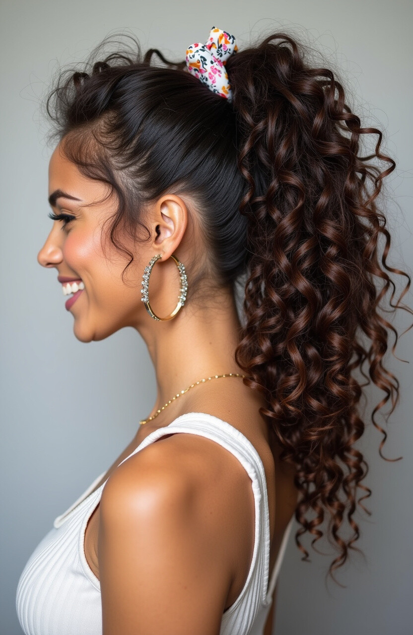 Gather your curls into a ponytail, allowing them to spring freely. It’s a style that celebrates natural texture and personality.
