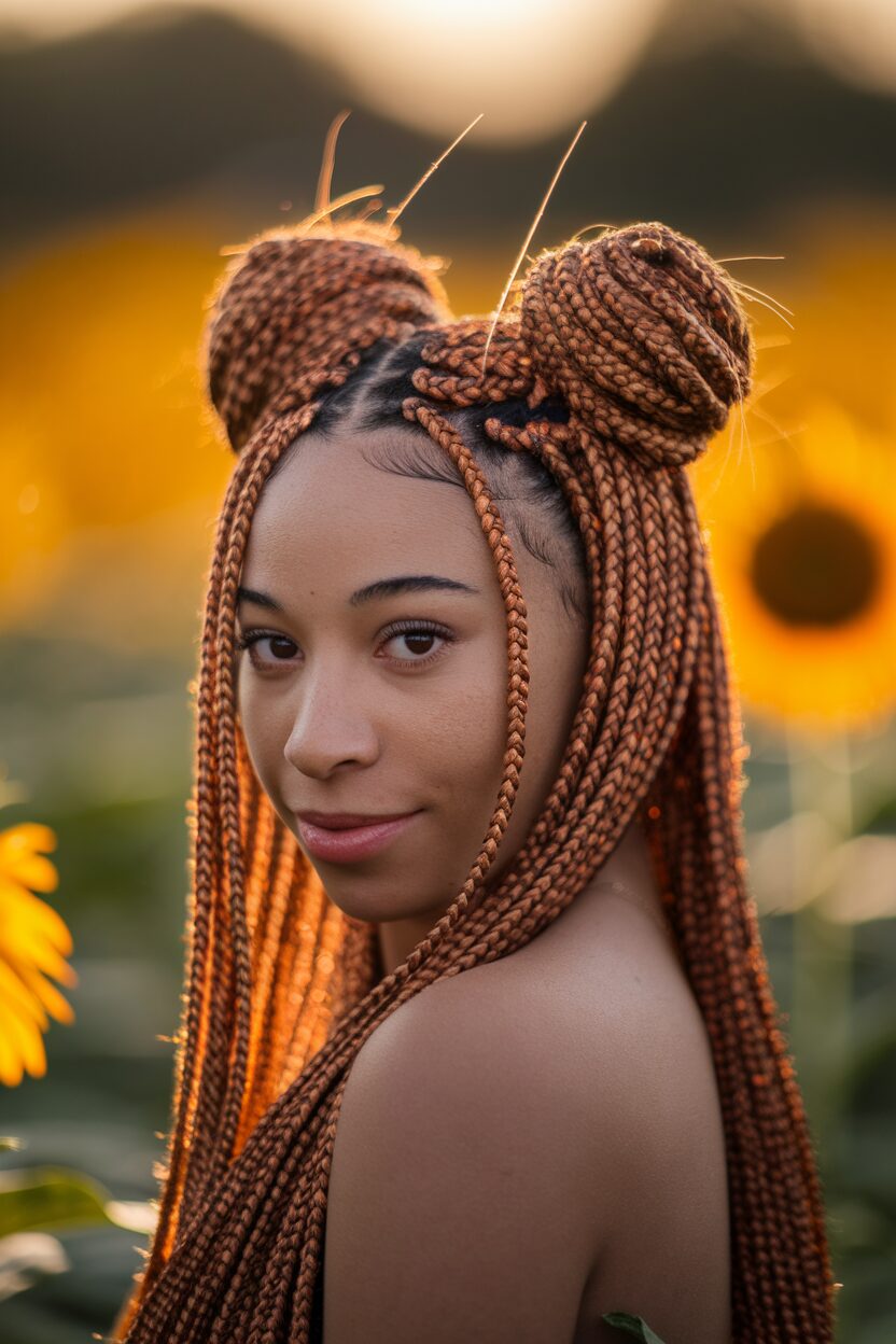 19. Space Buns with Micro Braids