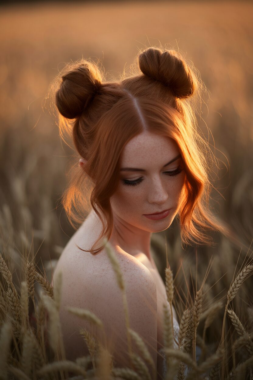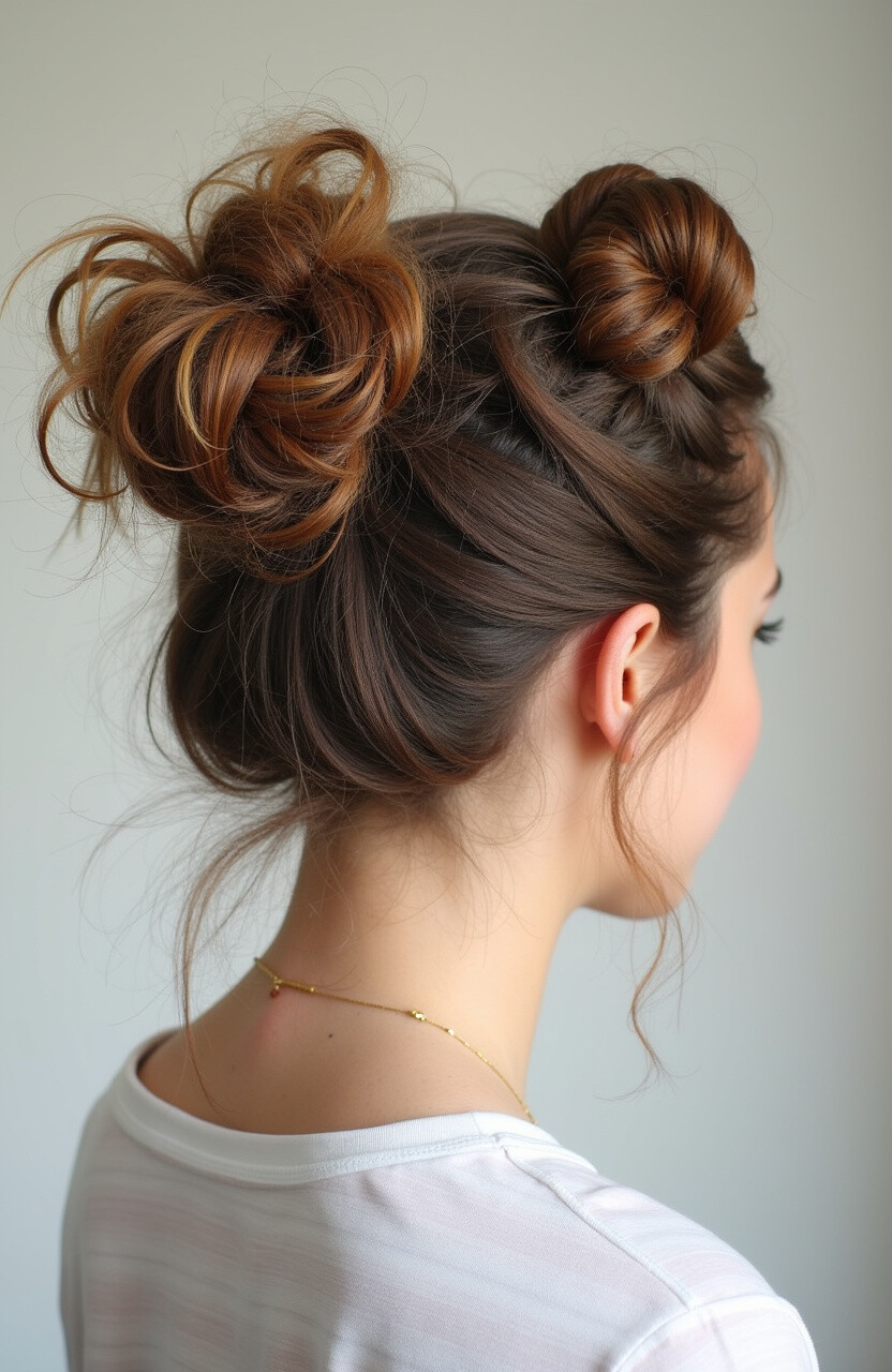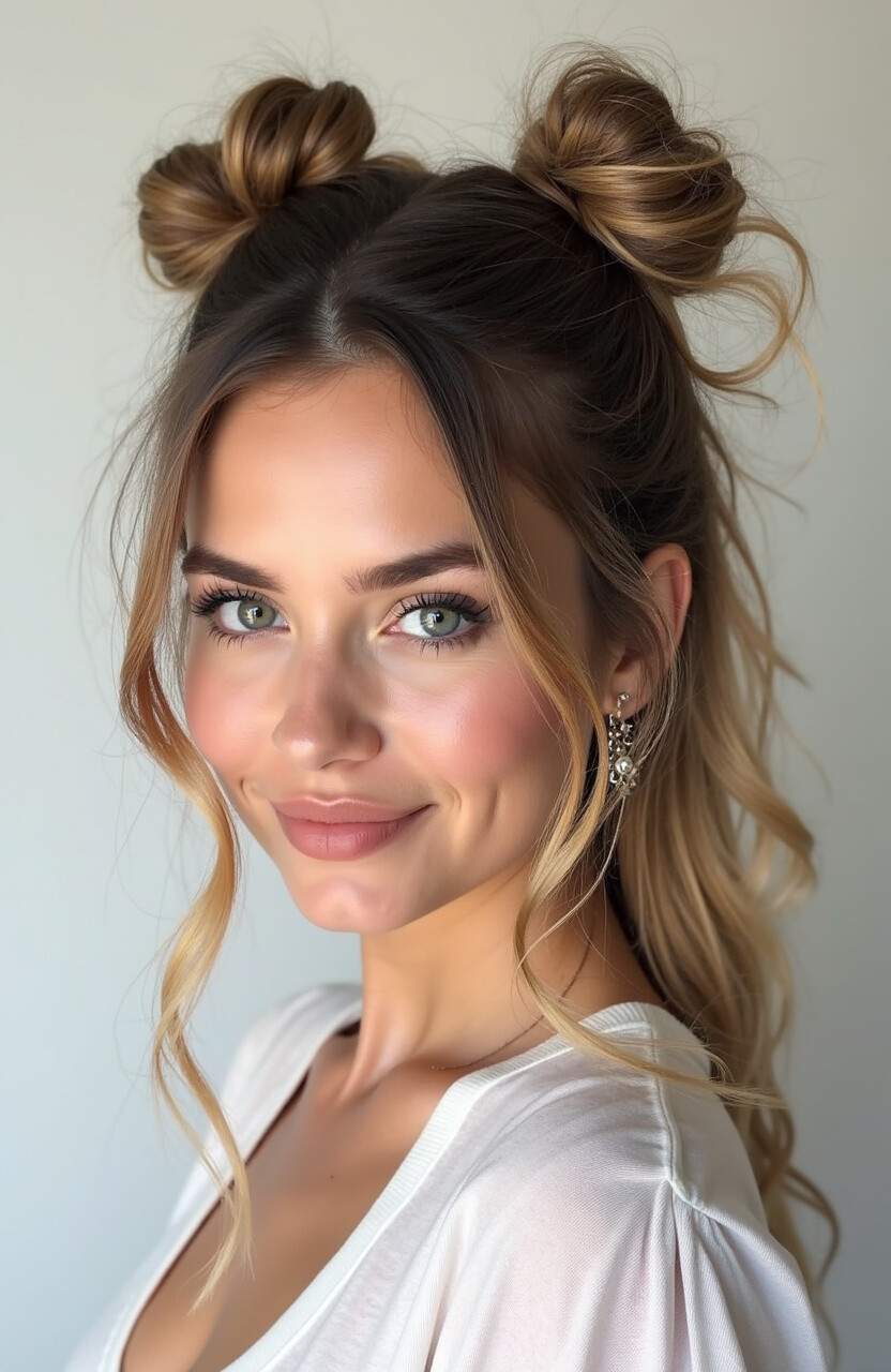 Embrace the beauty of imperfection with messy space buns. They are quick to style and have a carefree charm.