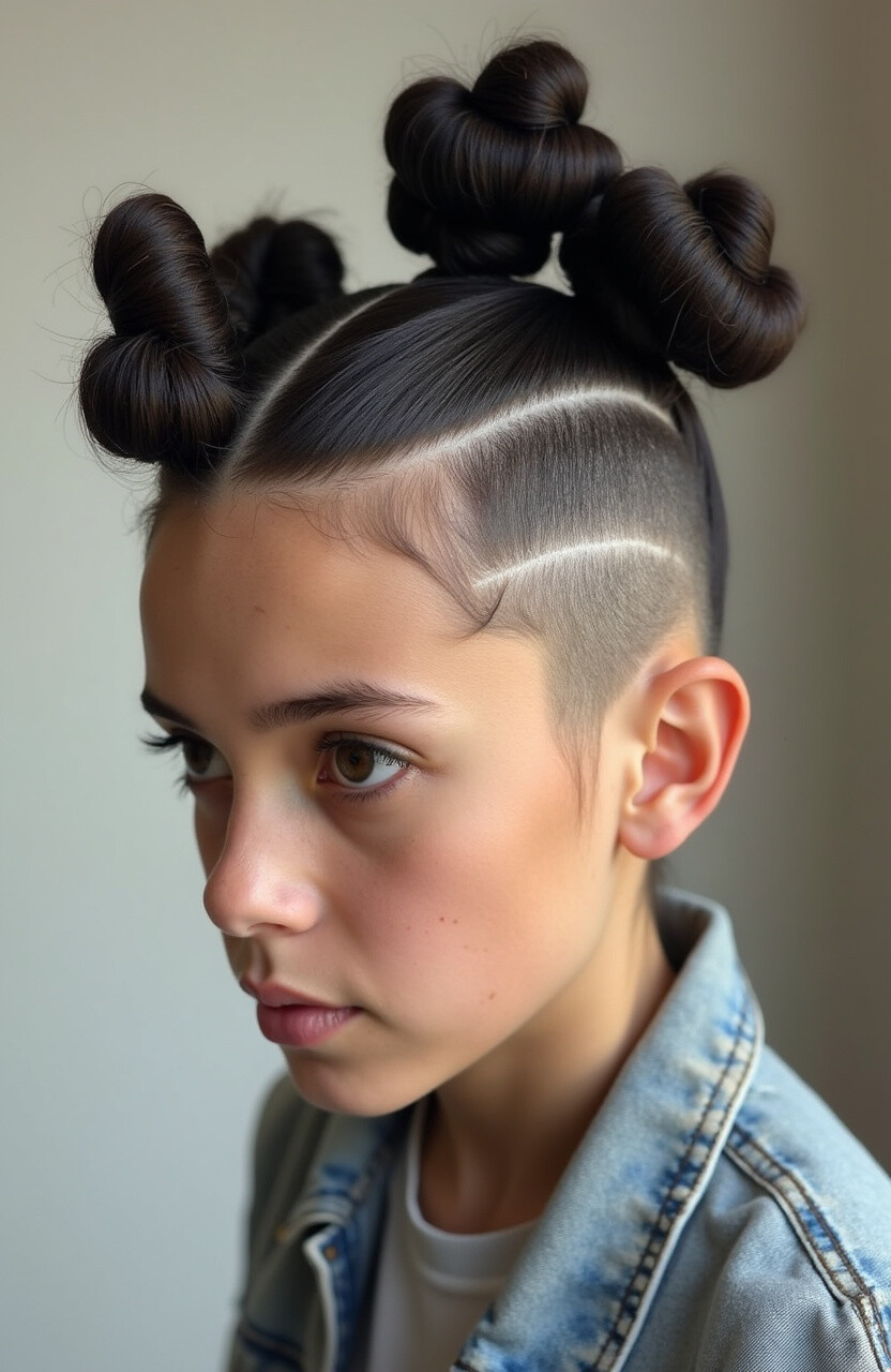 Combine the edginess of a faux hawk with the playful nature of space buns. It’s a bold and daring style.