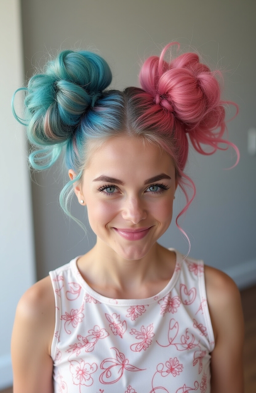 Add a pop of color to your space buns using temporary hair dye. It’s a fun way to experiment with bold shades.
