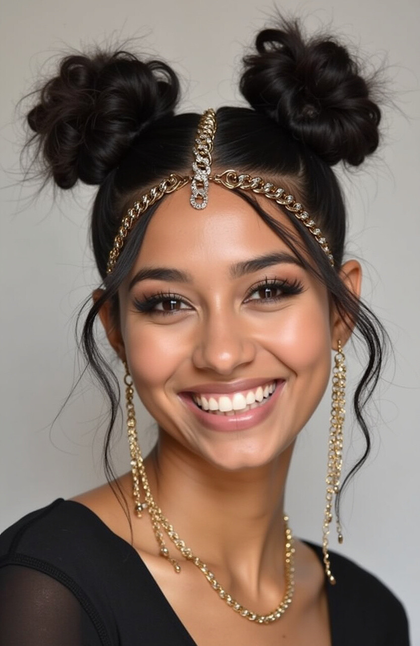 Add a touch of glam with chains draping over your space buns. Perfect for an edgy and sophisticated look.