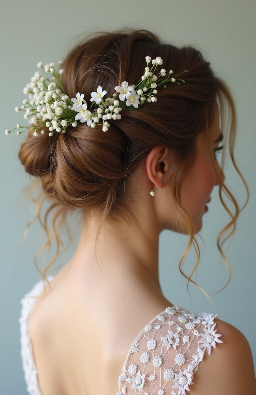Adorn your space buns with delicate flowers for a romantic touch. Ideal for weddings or garden parties.