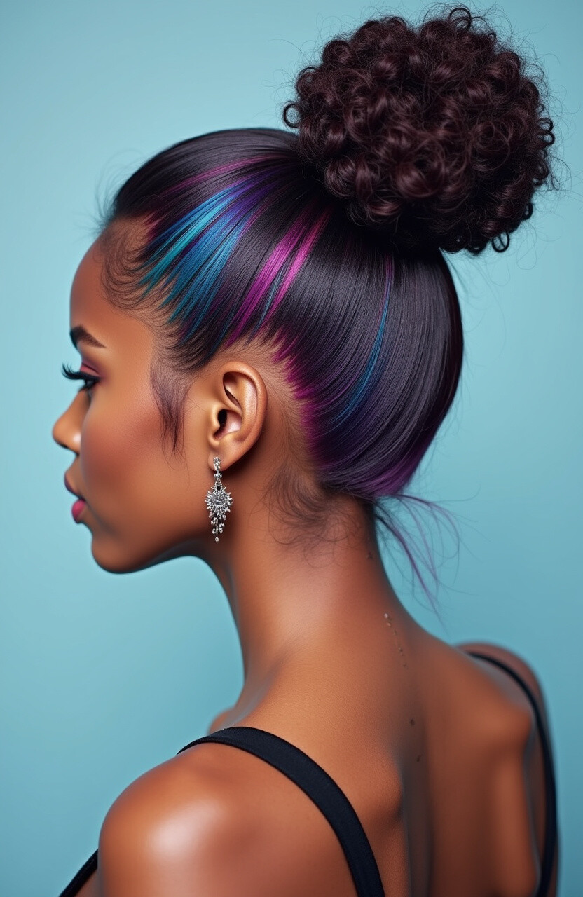 When styled into buns, the colors peek through for a stunning effect. It’s a trendy and modern way to add color.
