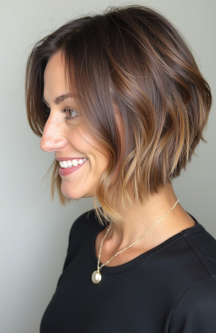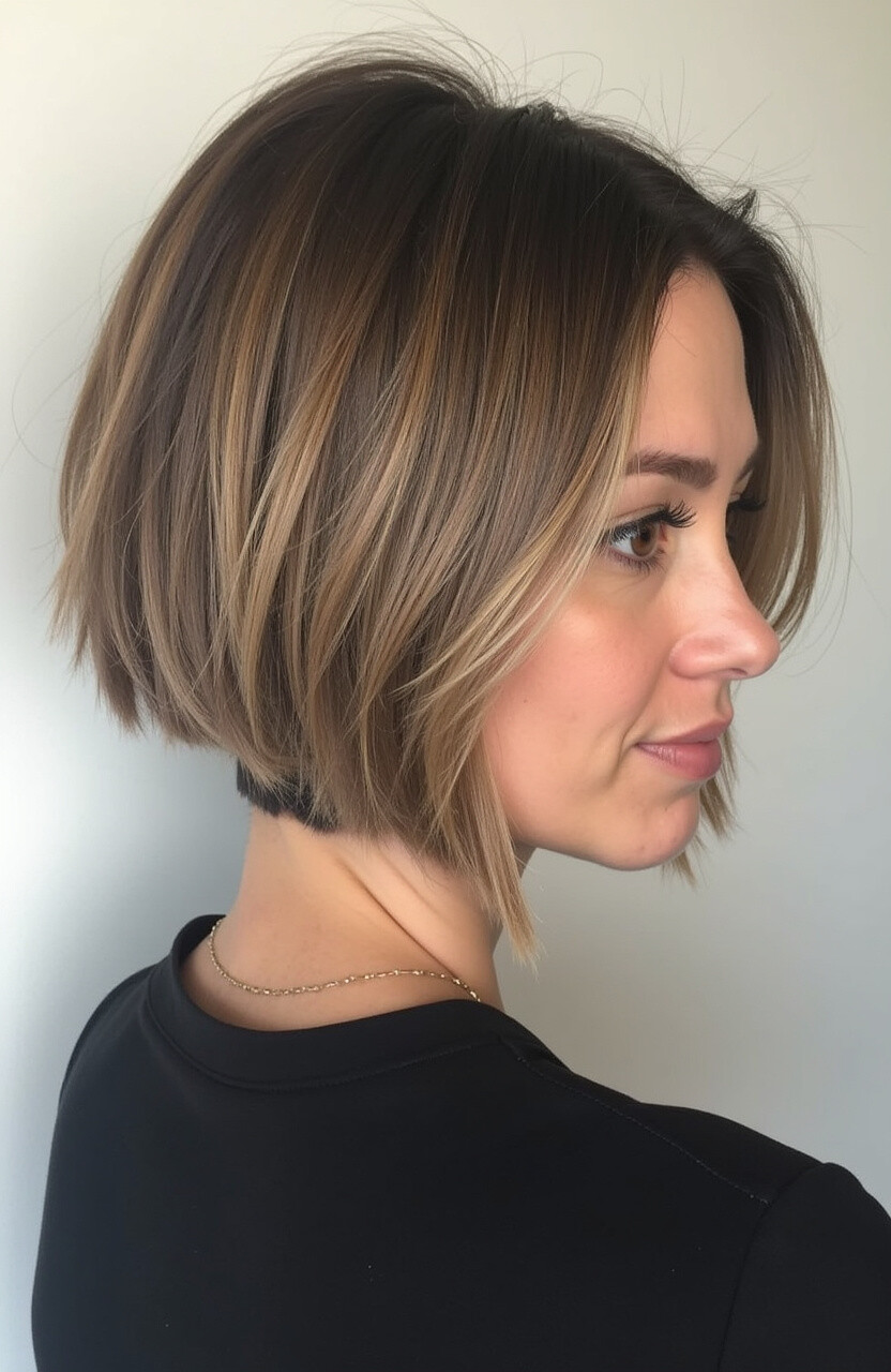 A balayage adds a beautiful, sun-kissed effect to your stacked bob. It creates a natural transition of colors, adding depth and light.