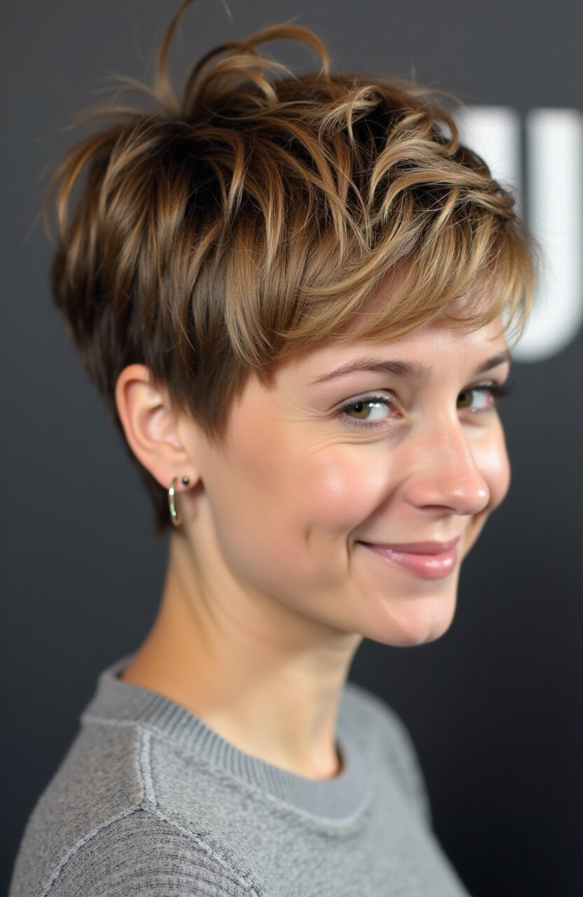 The tousled pixie is an adventurous choice. Its short length is liberating, while the textured layers add flair and movement. This hairstyle is perfect for those who love to keep it short and chic.