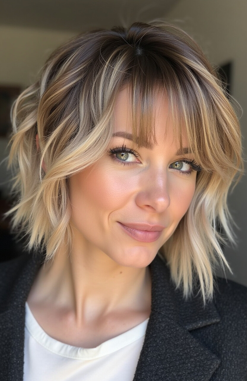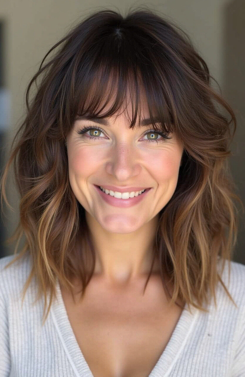 Textured bangs are a game-changer in any hairstyle. They add a playful element to your look and work well with different hair lengths and types. These bangs can make your eyes pop and soften your features.