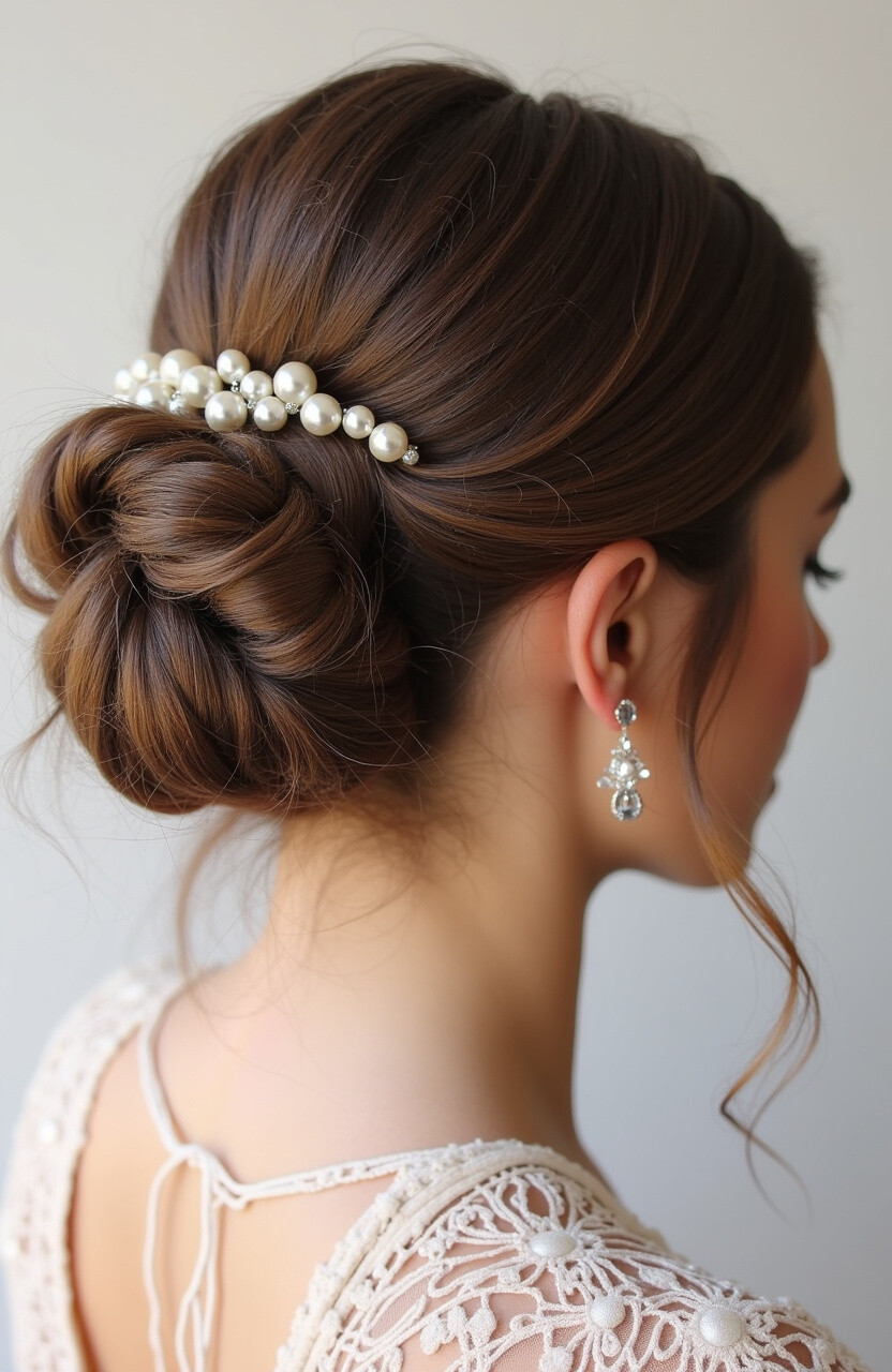 Incorporate pearls or small gems for added sparkle. This bun is an affordable way to achieve a stunning, high-fashion look without salon prices.