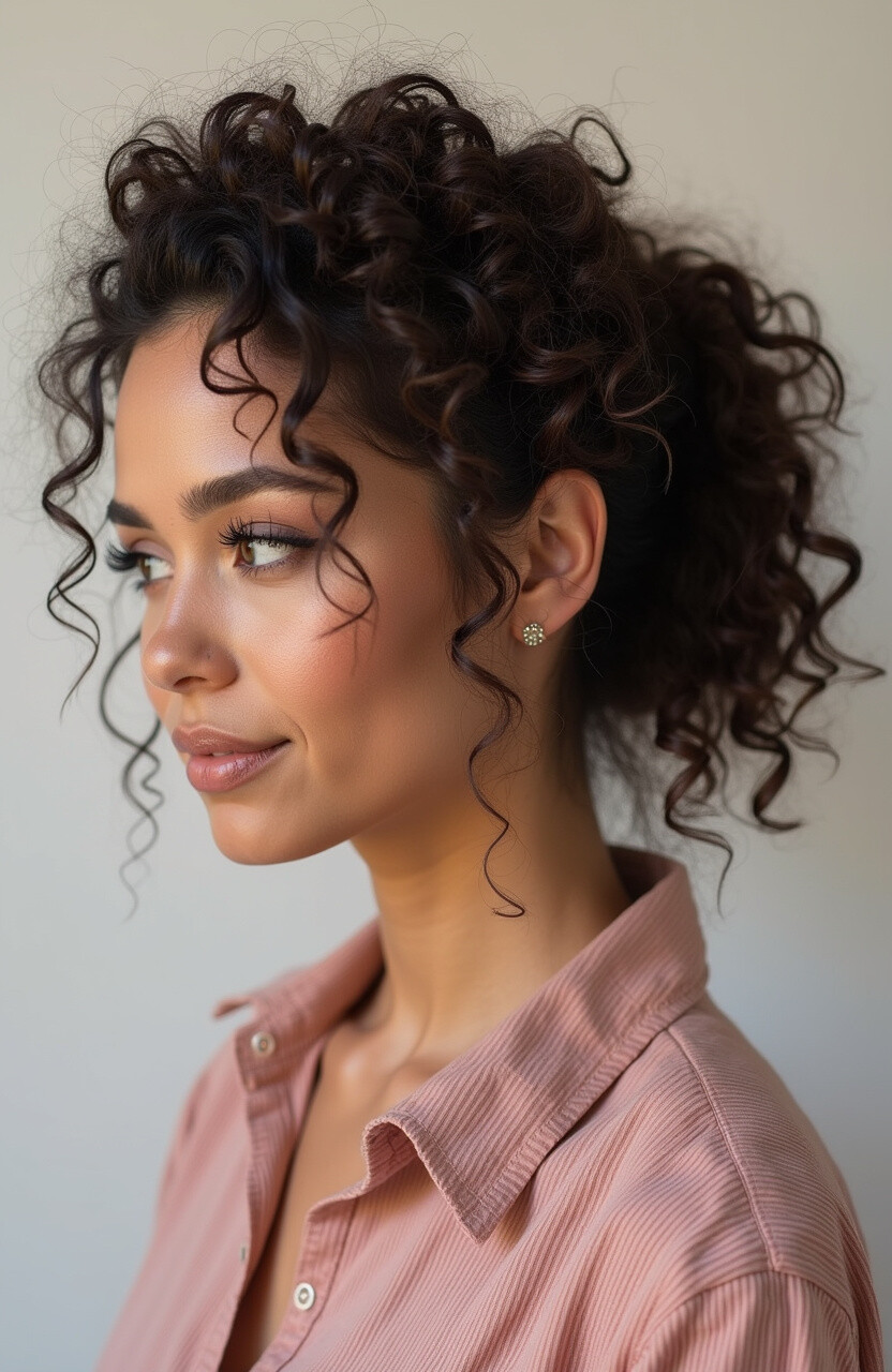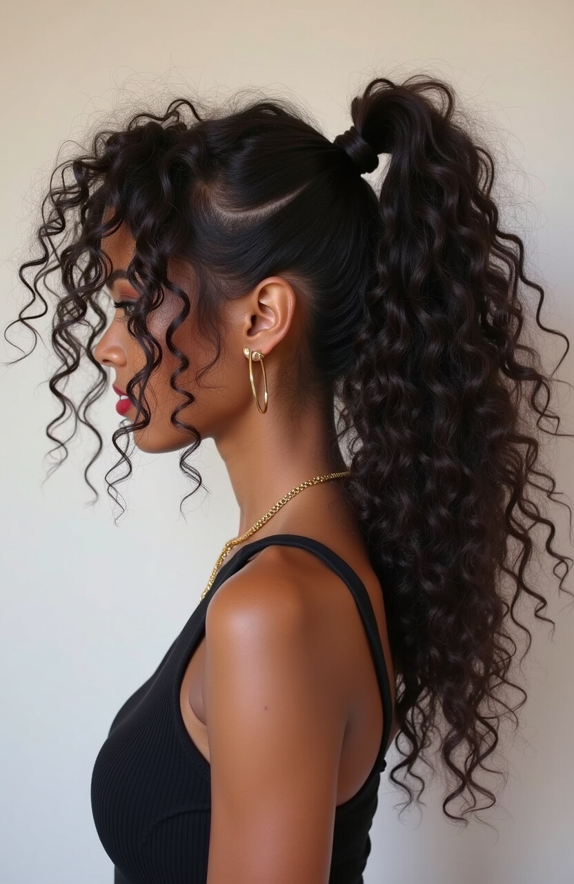 The curly ponytail is a classic and versatile hairstyle. It’s perfect for keeping hair off the face while showcasing beautiful curls. This hairstyle is great for both casual and formal settings.