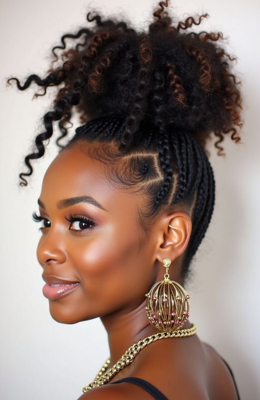 Braided curls combine the beauty of braids with the texture of curls. They offer a unique and creative look. This hairstyle is perfect for those who love to experiment with their hair.