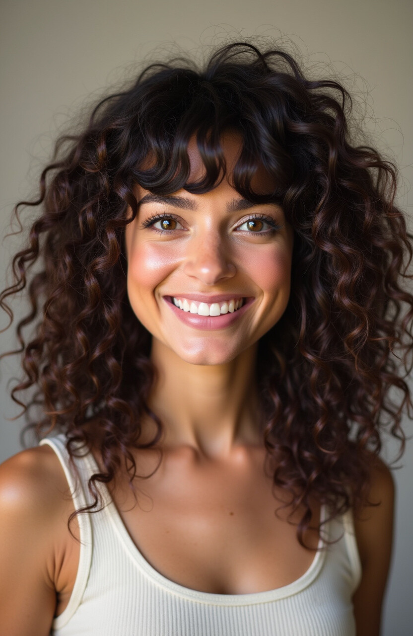 Curly bangs add an element of surprise to any hairstyle. They frame the face beautifully and can be worn with long or short curls. This style is for those who love a playful and youthful look.