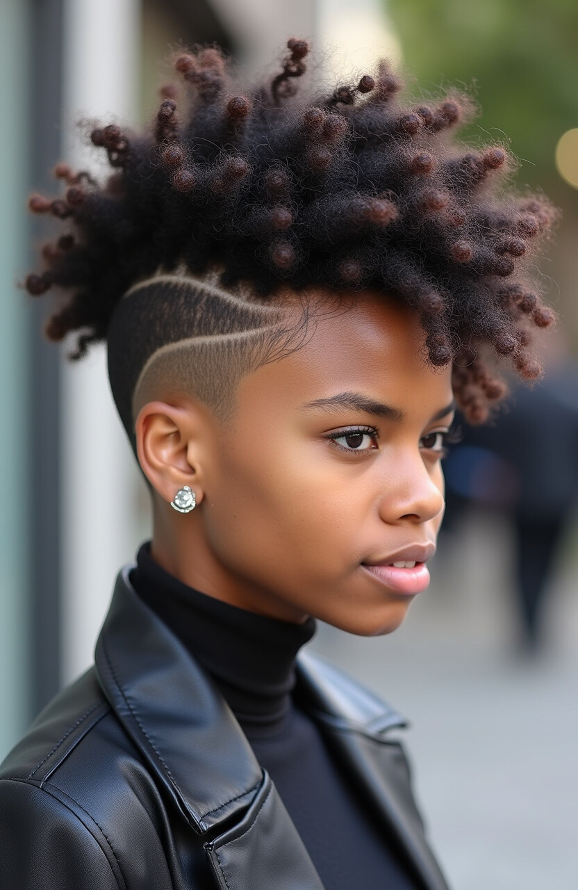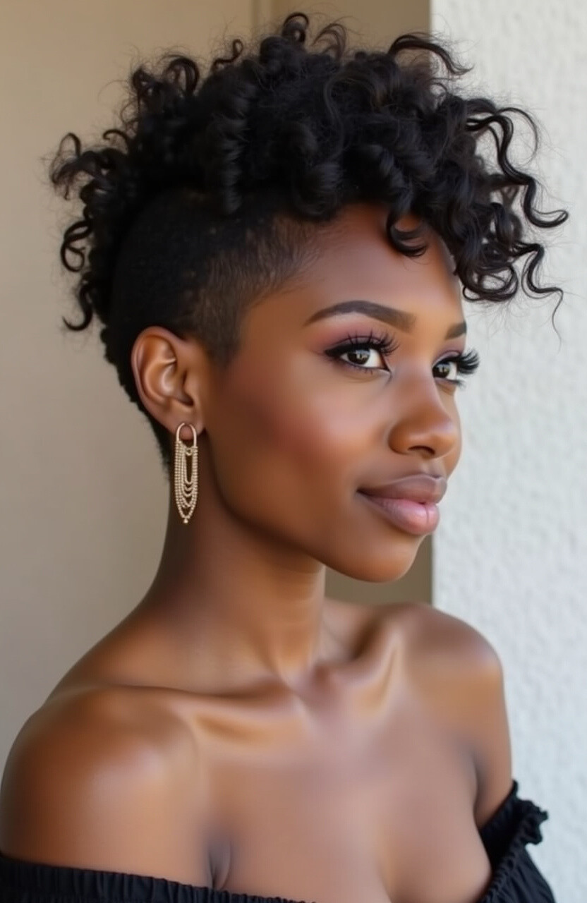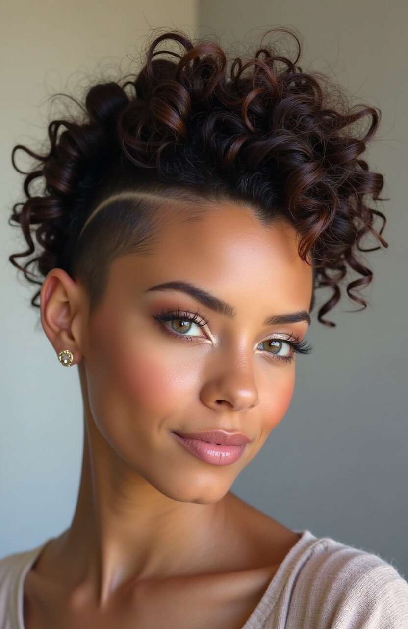 The curly mohawk is edgy and modern. It combines the rebellious spirit of a mohawk with the softness of curls. This hairstyle is perfect for those who love to stand out.