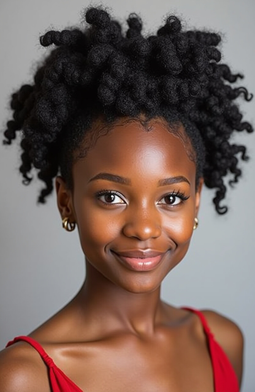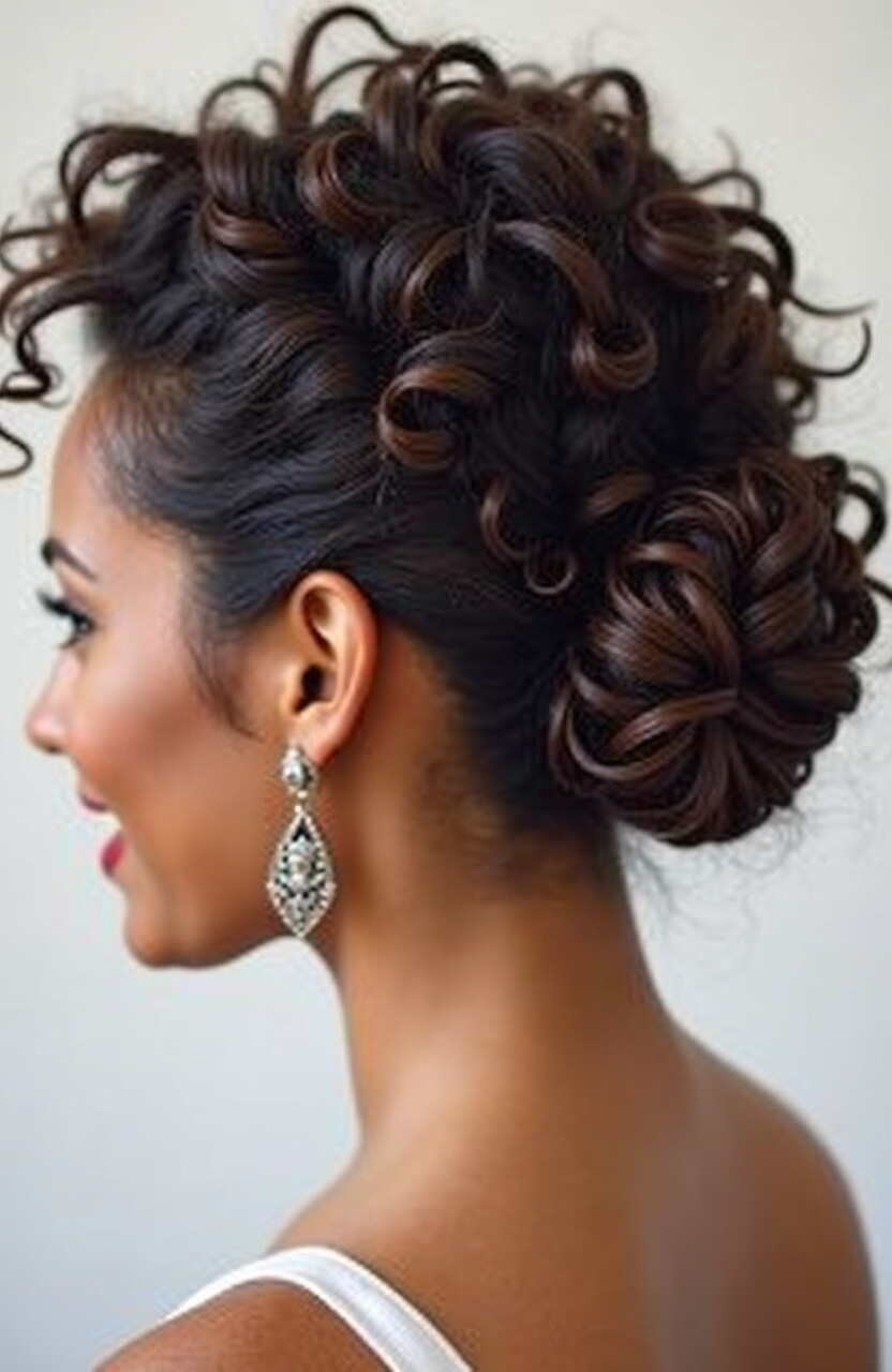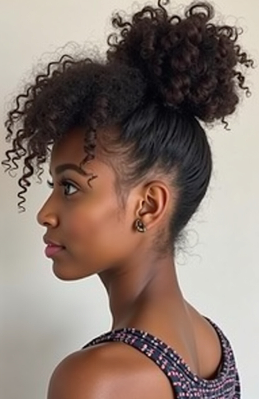 The curly top knot is a fun and practical hairstyle. It keeps curls out of the face while looking chic and stylish. This hairstyle is perfect for busy days or when you want a quick, easy look.