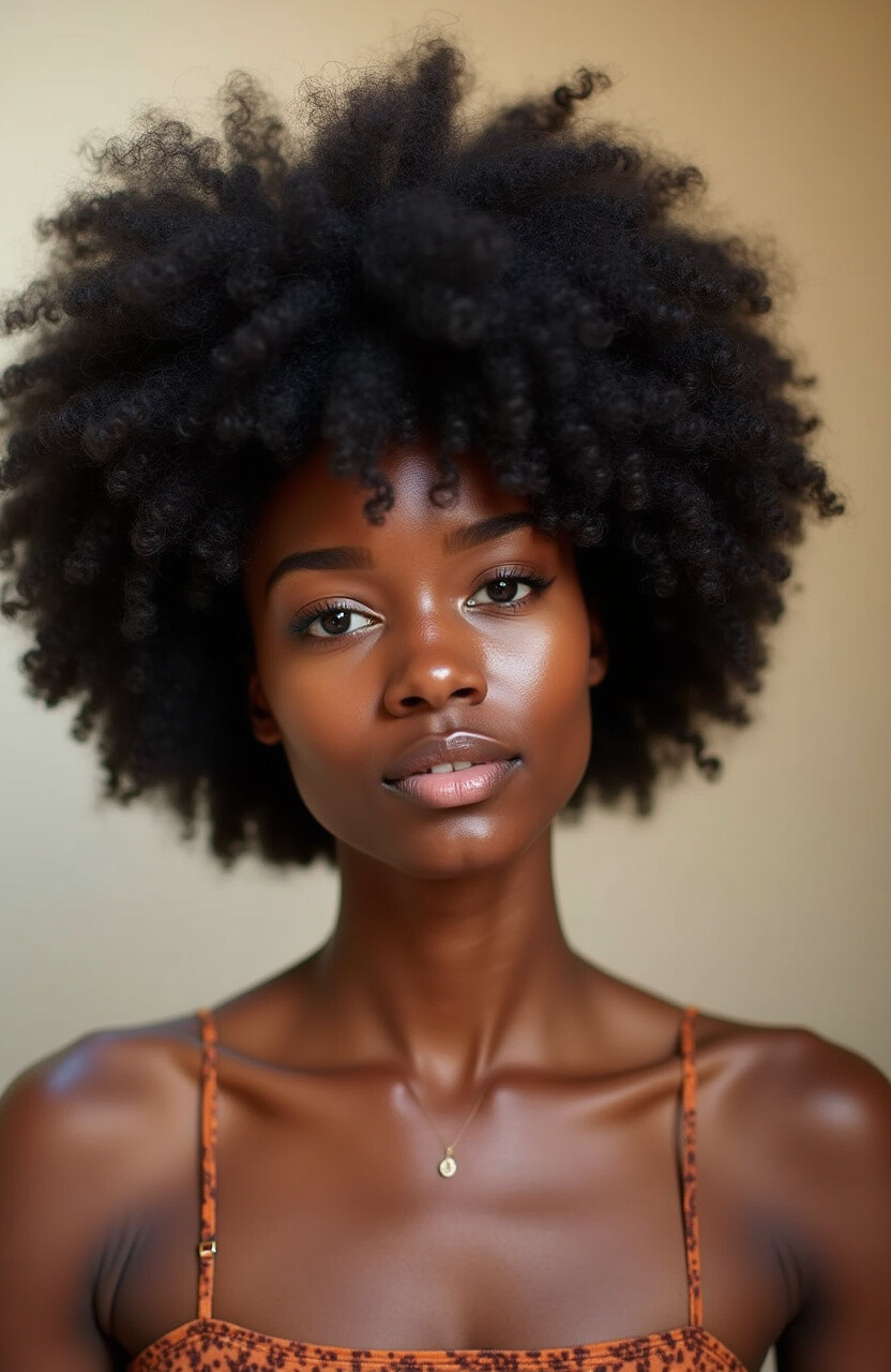 The voluminous afro is all about embracing natural texture. It’s big, bold, and full of personality. This hairstyle celebrates the beauty of natural curls and offers a timeless, effortless charm.