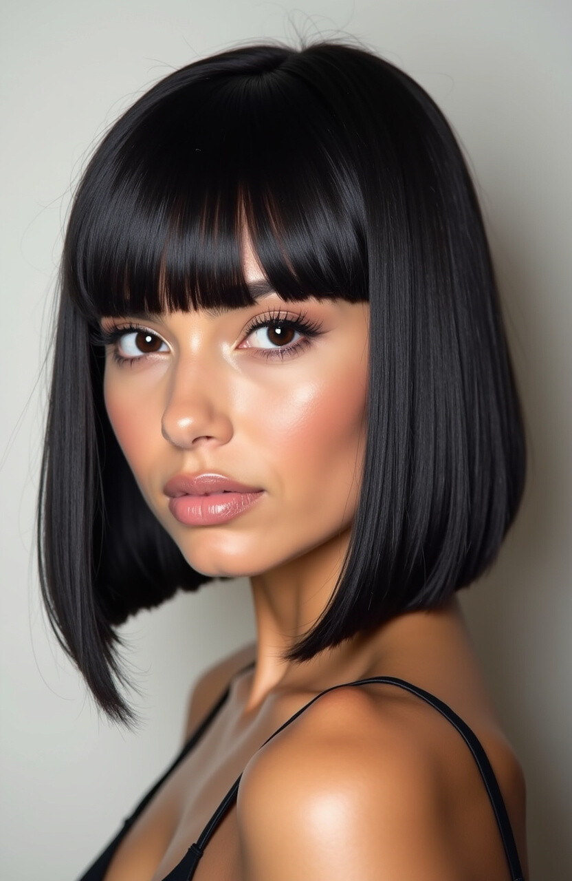 The Blunt Cut is a sleek, straight-across style that offers a polished, sophisticated appearance. It’s perfect for those who prefer clean lines and a modern feel.