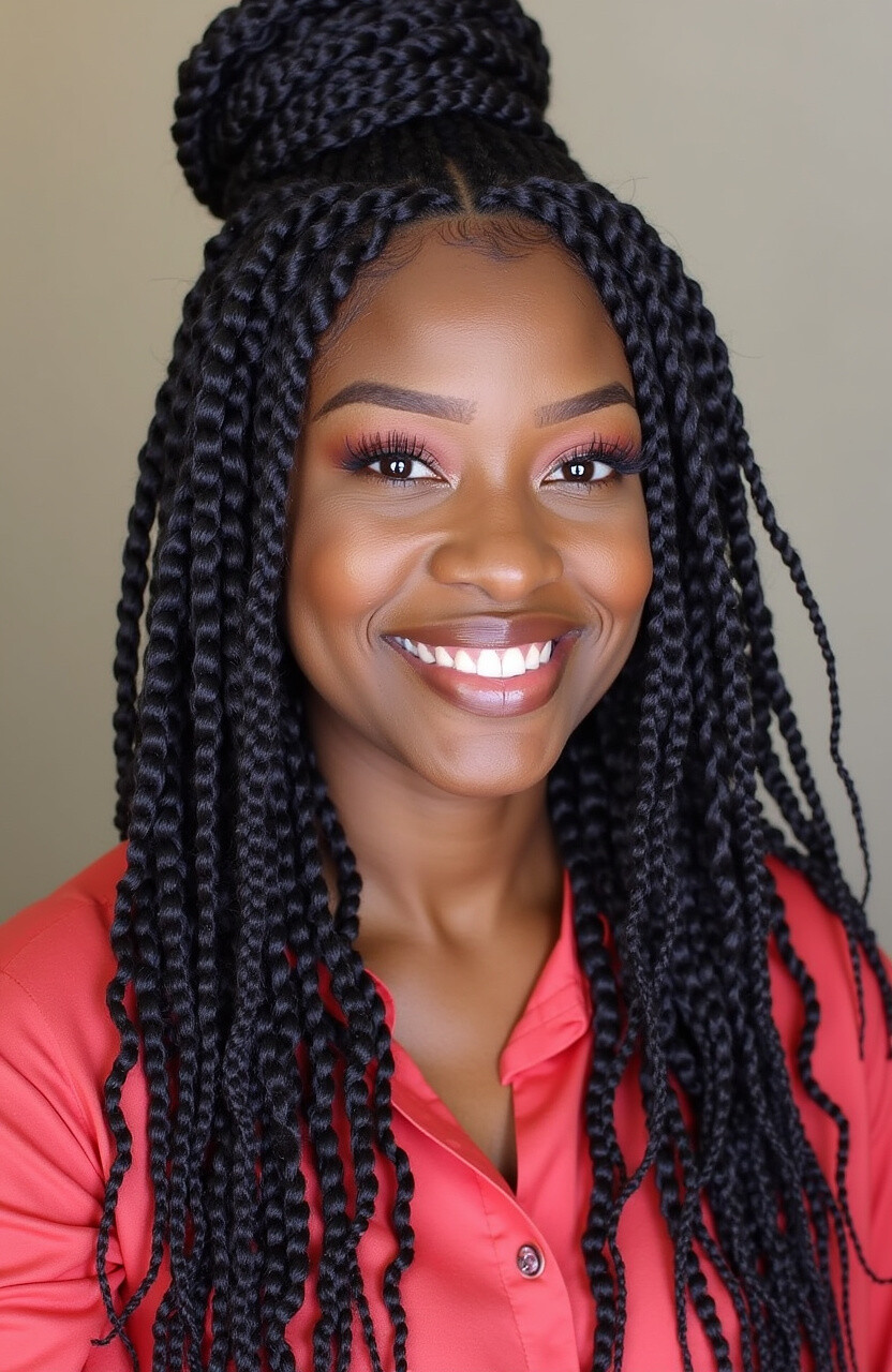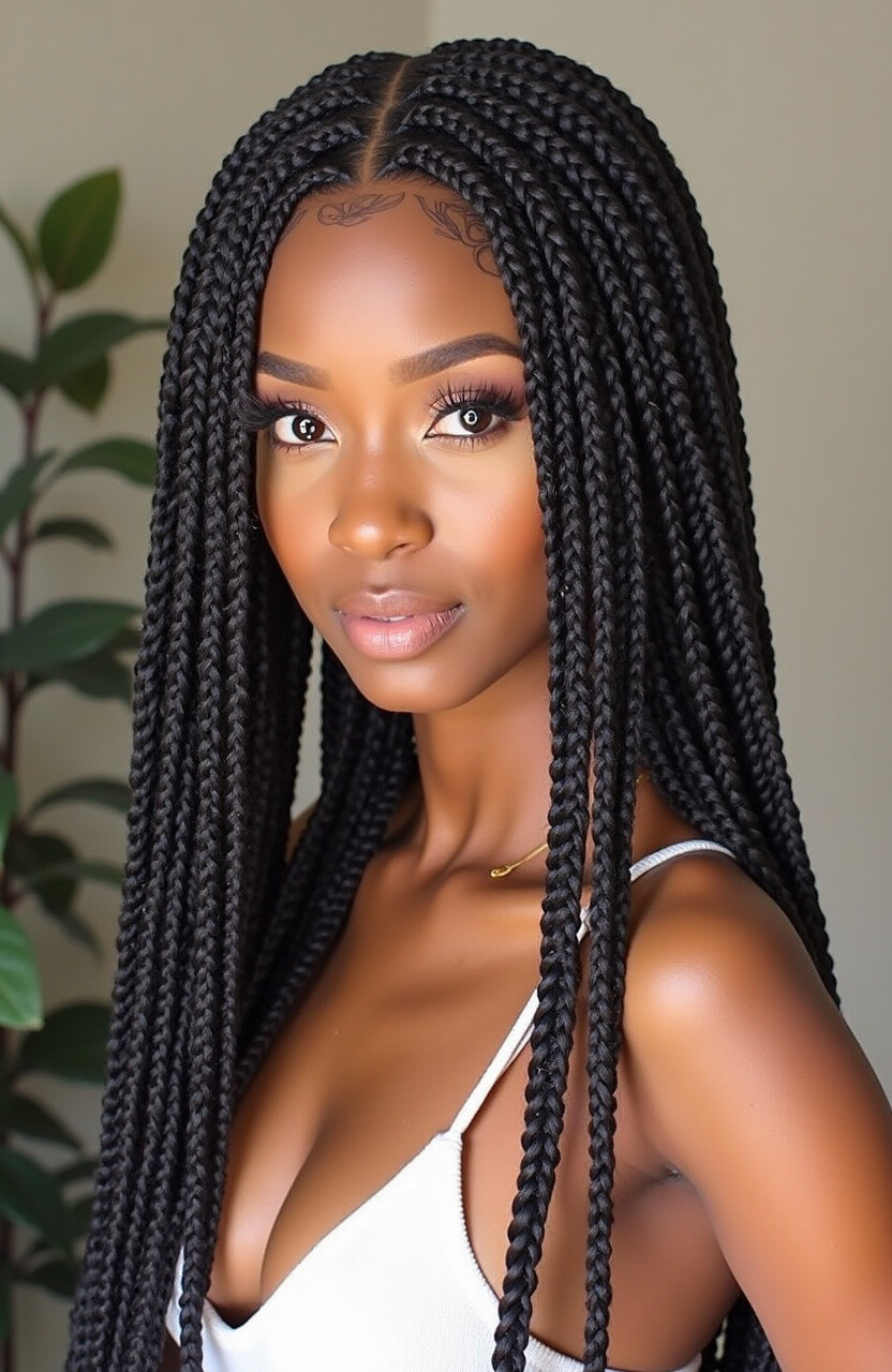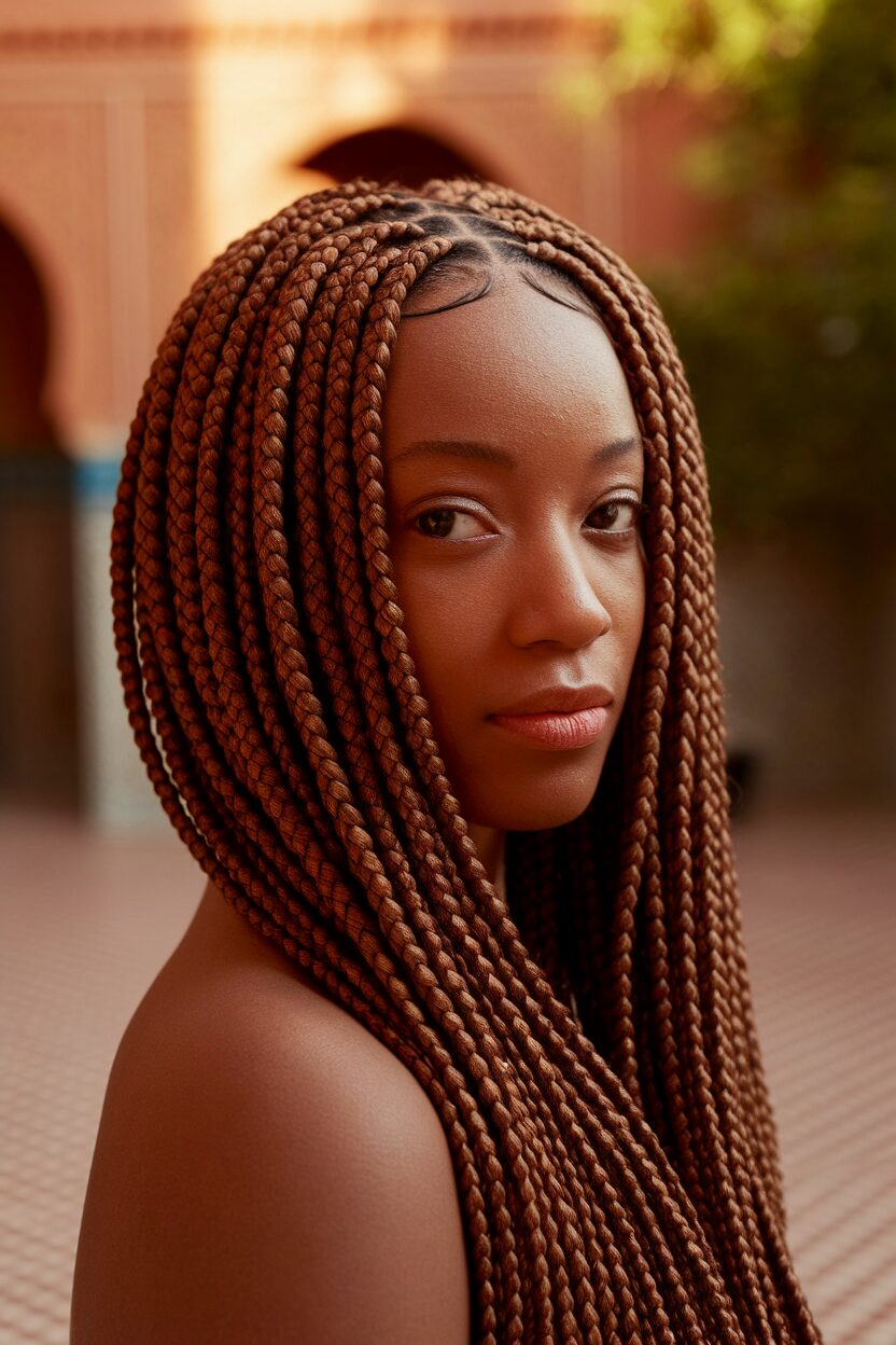 Sleek and shiny, Senegalese twists are all about elegance. They use a smoother type of hair, resulting in a glossy finish. Perfect for both formal settings and weekend adventures.