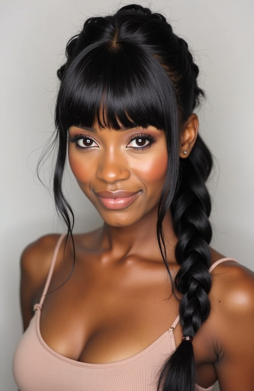 Want to try something new without a full commitment? Twisted bangs are the answer. They frame your face beautifully and add a unique flair.