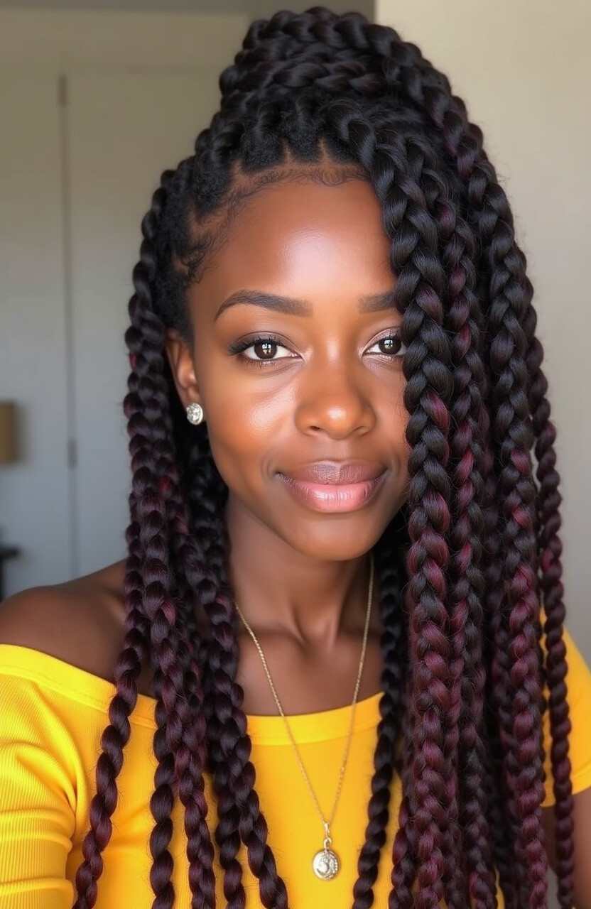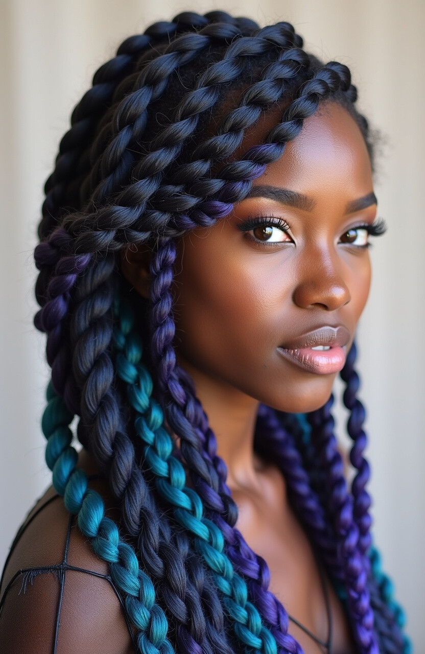 These twists are quick to install and offer a dramatic look. Try them in bold colors like red or blue for an added wow factor. They’re cost-effective and high on impact.
