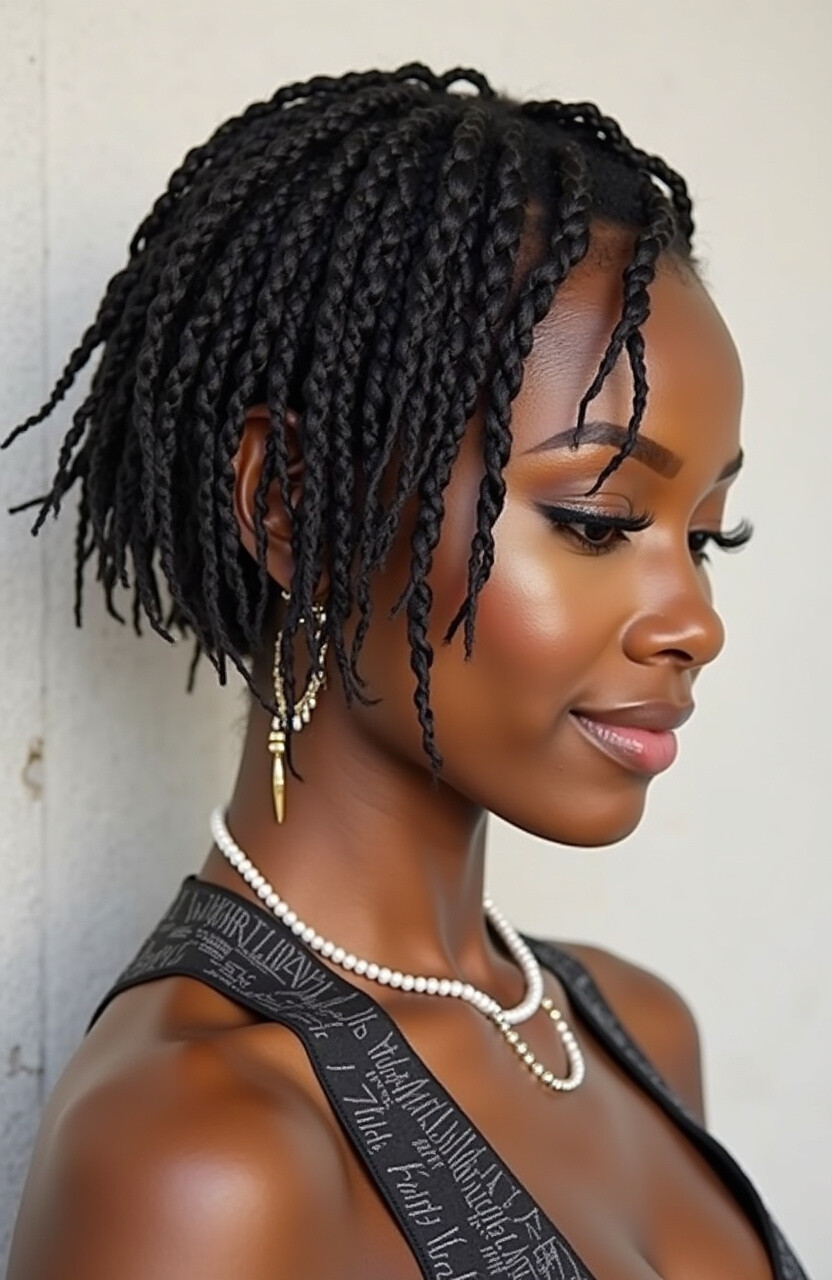 Short and stylish, a twisted bob is perfect for those who love a chic and easy-to-manage look. It combines the best of both worlds: twists and a bob cut.