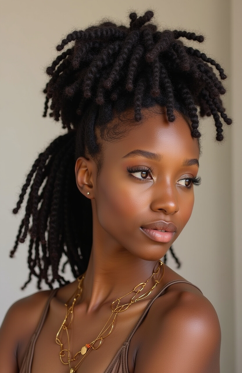 Short, bouncy, and full of life, Nubian twists are perfect for adding a playful touch. They have a springy texture that bounces with every step.