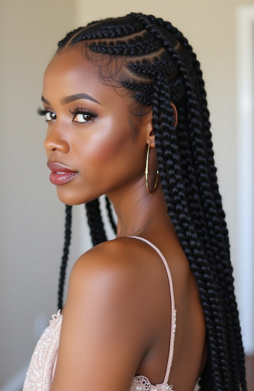 For a romantic and soft look, side-swept twists are ideal. They cascade beautifully over one shoulder, creating a gentle waterfall effect.