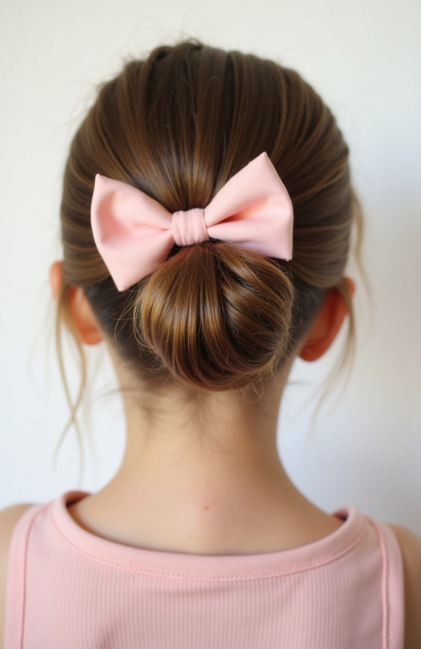 A bow adds a sweet touch to any hairstyle. Pairing it with a twisted bun creates a charming, youthful look.
