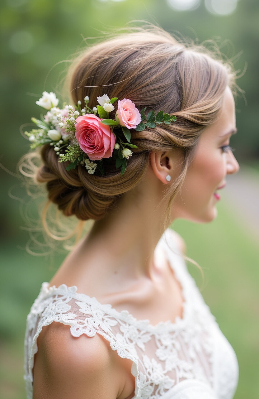22. Twisted Bun with Floral Accents