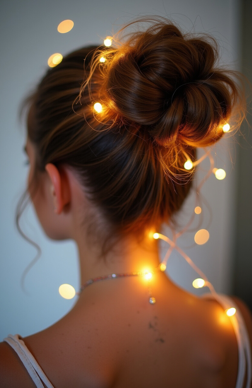 18. Twisted Bun with Twinkling Lights