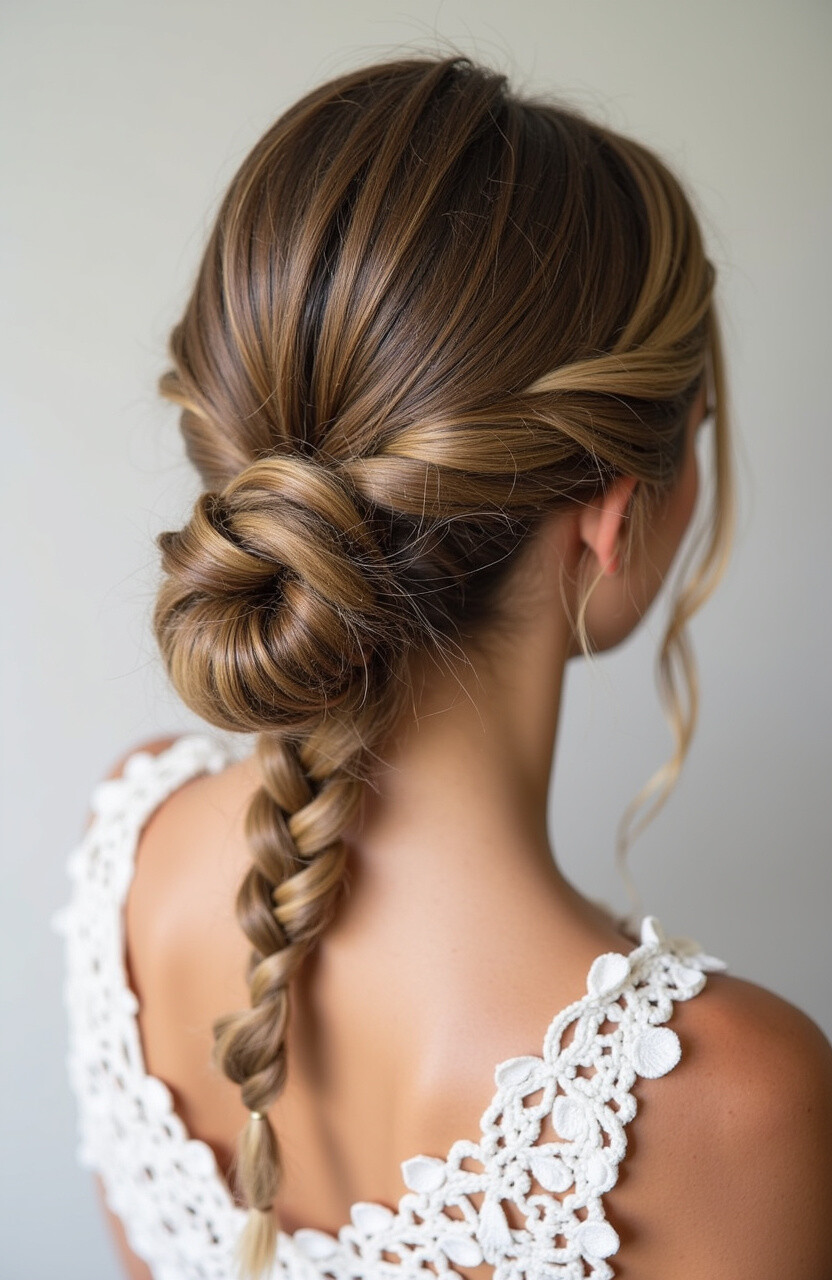 21. Twisted Bun with a Fishtail Braid