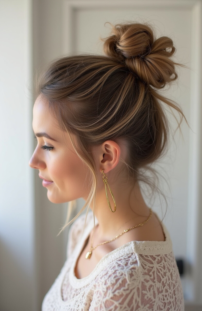 For those who adore boho-chic styles, this one’s for you! The boho twisted top knot is effortless yet stylish. It’s a great choice for casual outings or music festivals.