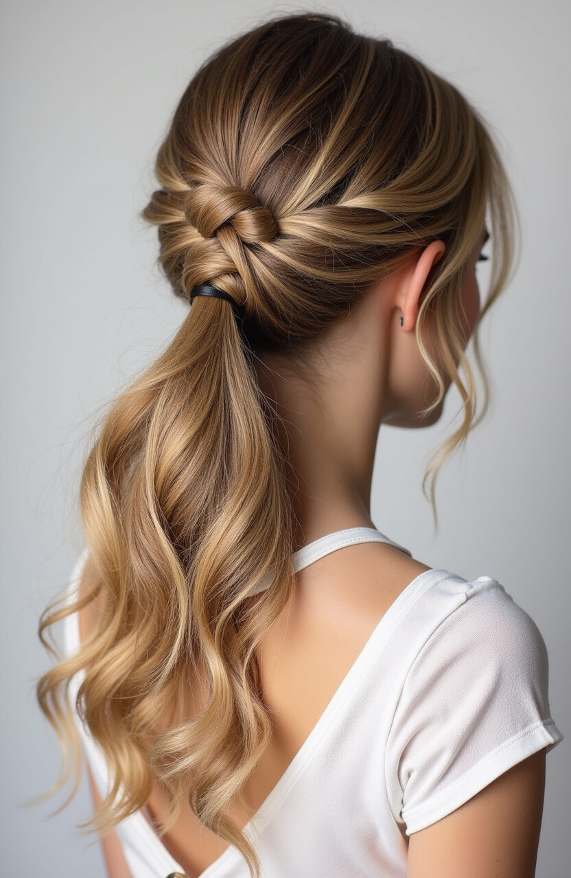 Tie your hair into a knot before securing it into a ponytail. It’s a simple yet effective way to add interest to your hairstyle.