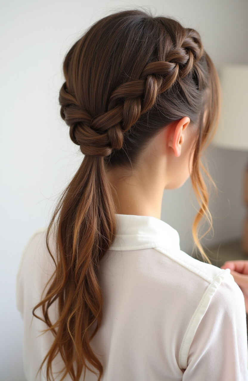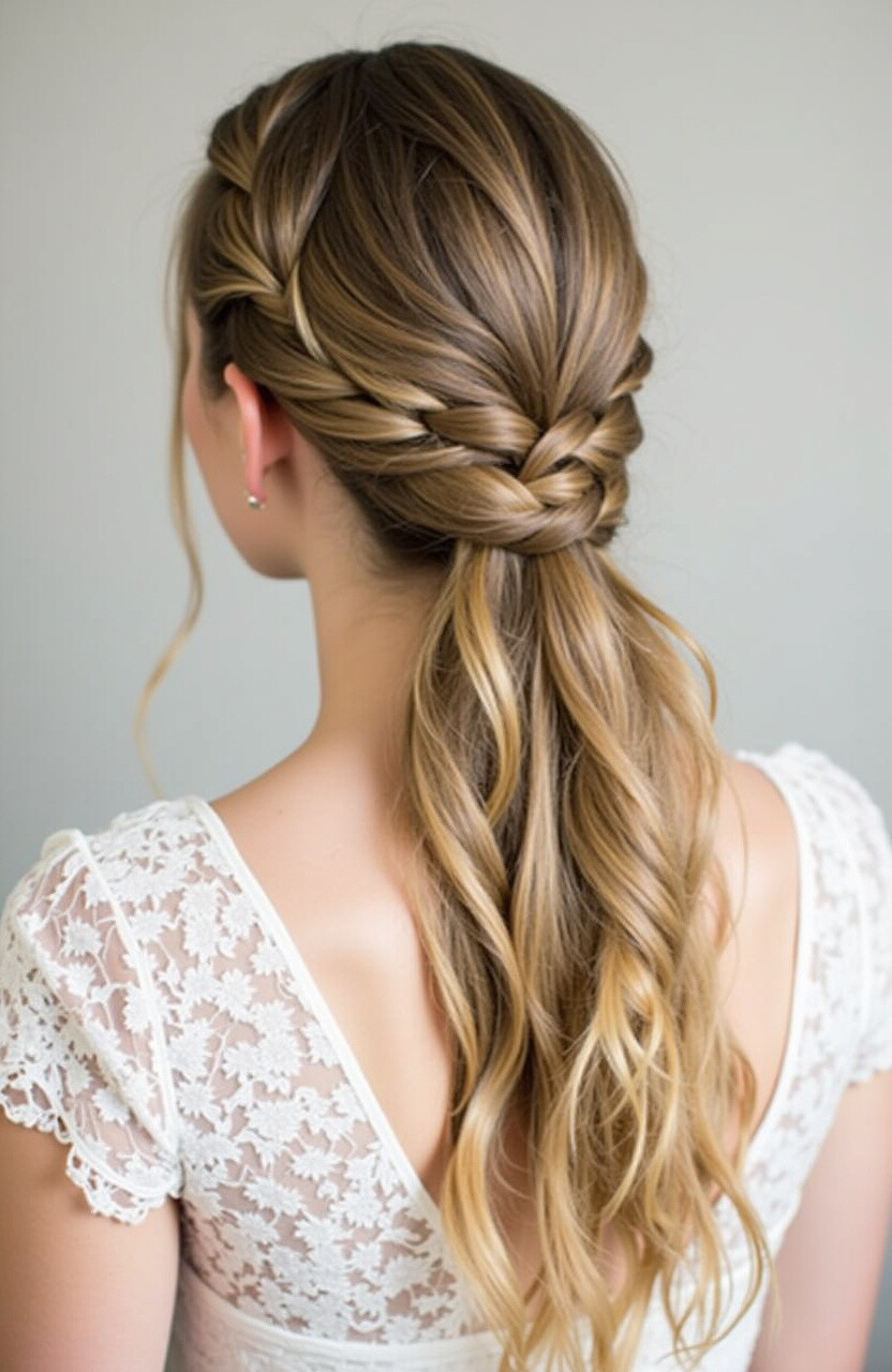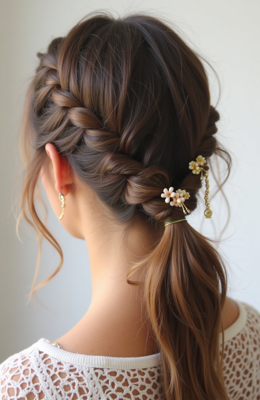 Start with a fishtail braid, then twist it into a ponytail. This look adds a unique texture and can be personalized with hair accessories.