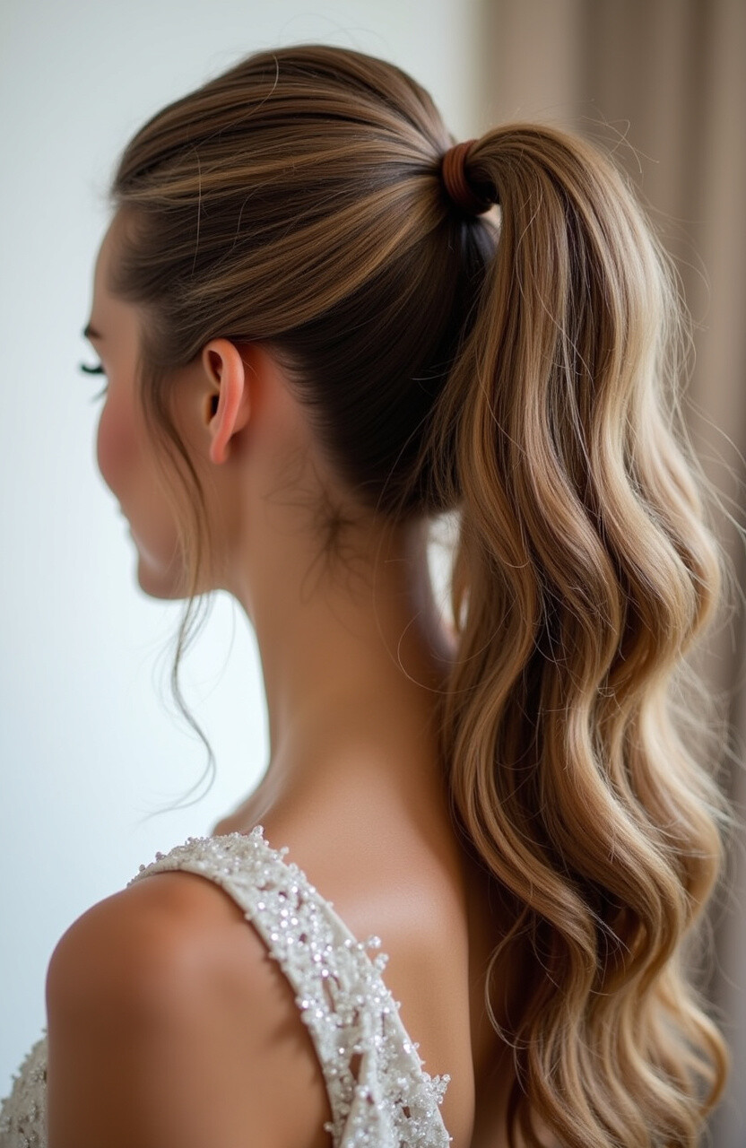 To achieve this look, start with beachy waves, then twist sections of hair before securing them into a ponytail. Add a few decorative pins or flowers for a personalized touch.